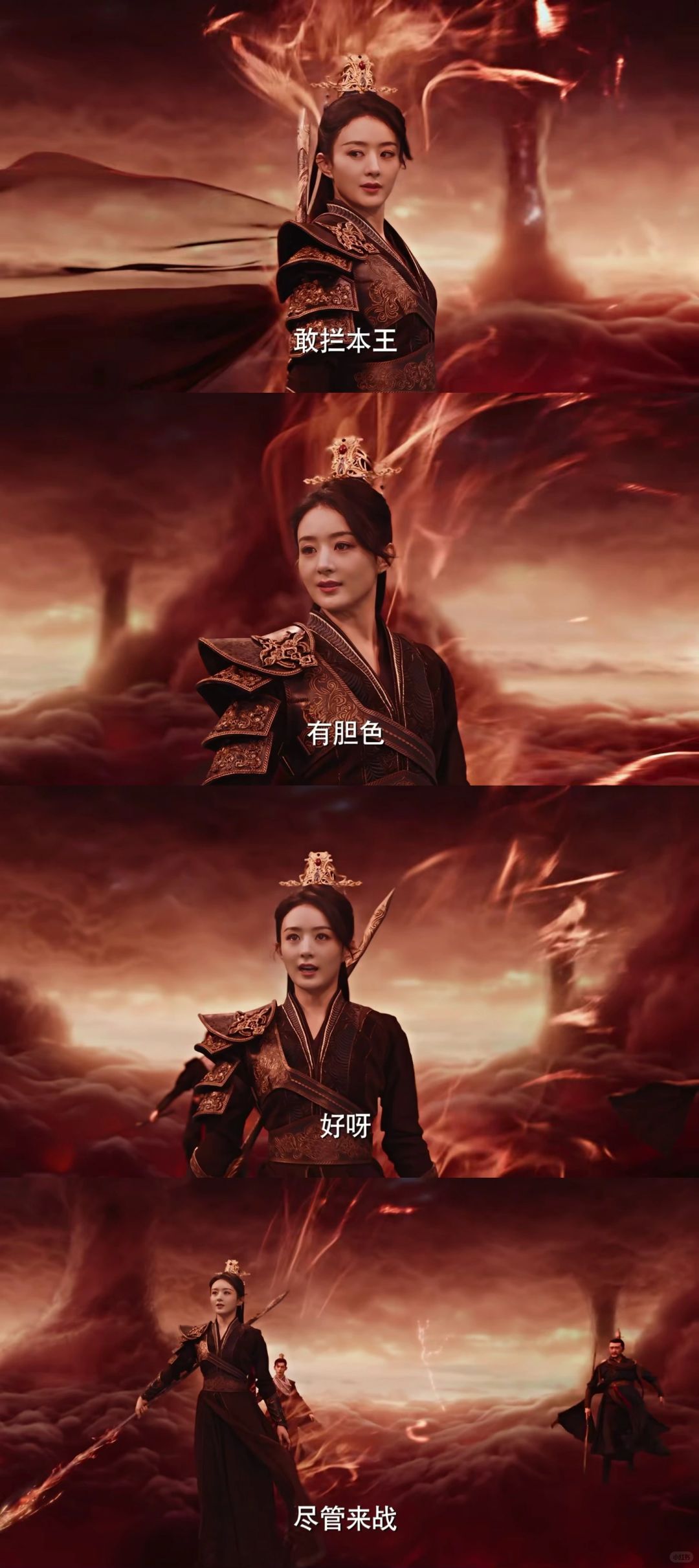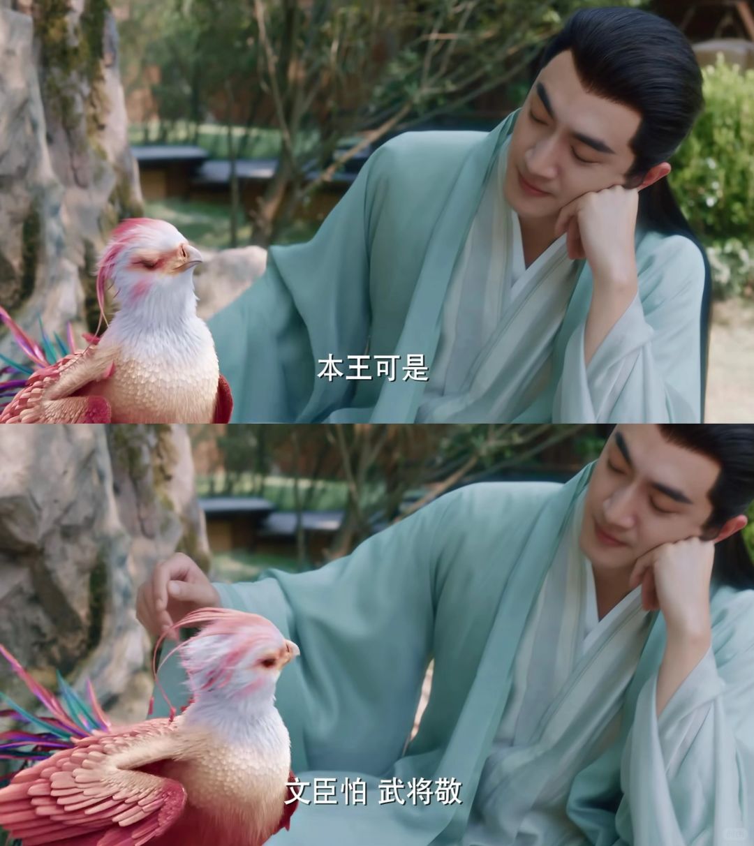 《与凤行》好看,沈璃的形象第一集就立住了,王爷的魅力关键在于“神气”二字。所谓神气,就是气正、安定。第一集一开头赵丽颖的表现太亮眼:一身铠甲亮堂堂,头戴金冠光映映,不合理的指婚,拒了就是,非要勉强,战了就是。她的打戏干脆又利落,动作大开大合,表情却始终很稳。这一动一静的对比,侧面展现出沈璃曾经经受的历练:只有身经百战的将领,对战的时候眼神才是沉静中夹杂着凌厉,凌厉中又有几分胸有成竹(赵丽颖的眼神戏真的太好了)。她“文臣怕,武将敬”,有着超高的武力值,也有斗天斗地也不怕的一丝狂。骄傲的凤凰受了伤,却被人当作鸡,被当作大公鸡的凤凰依然神气,隐于青山绿水的小屋成了疗伤圣地。咯咯哒,妙呱呱,号令千军的王爷身处“凡人”的屋檐下,种有鲜花的小院,竹子做的小屋,水缸中的绿色植物很好看。