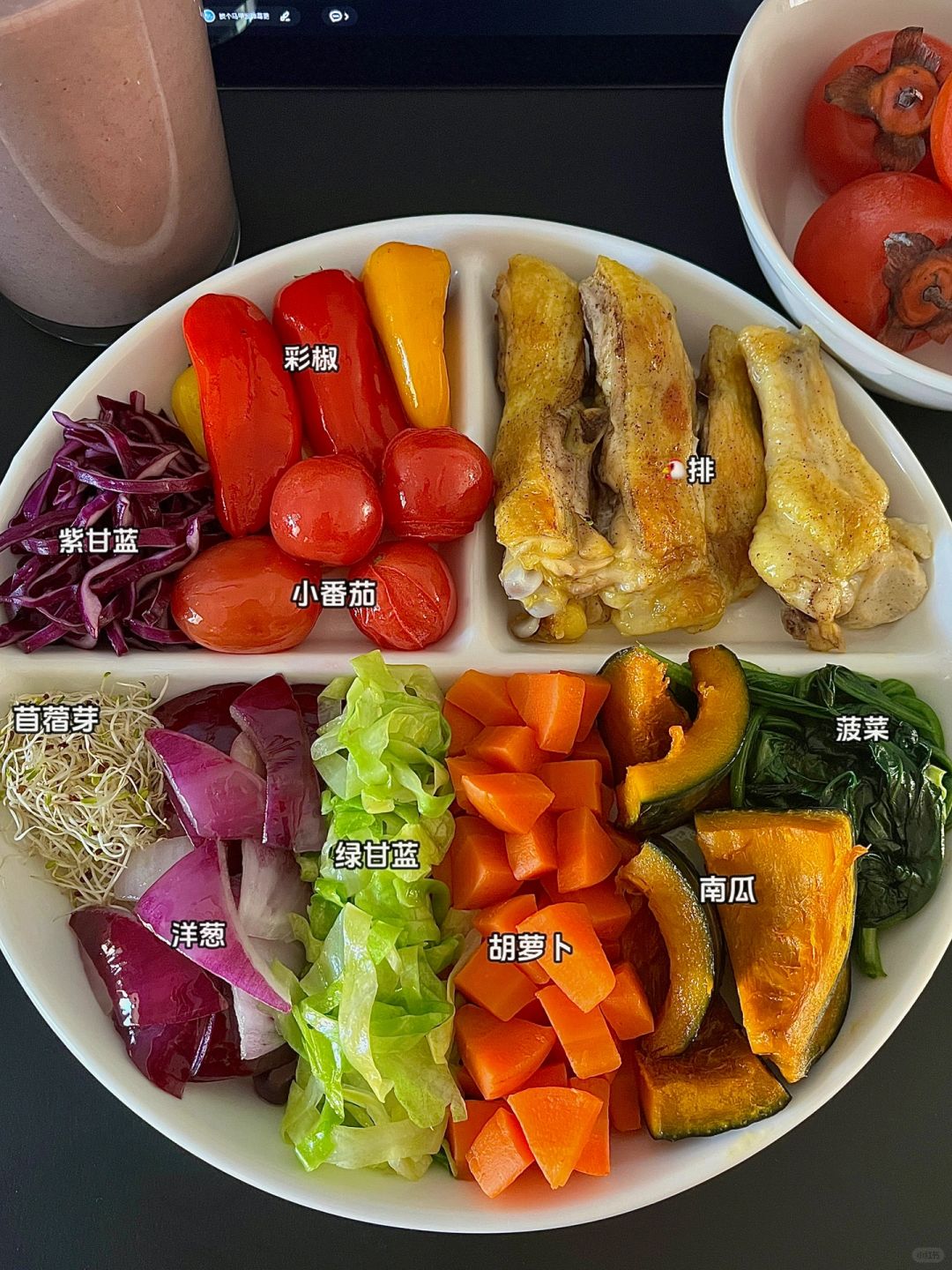 🏷今天早餐抗炎食物合集 🐔排肉🫑彩椒🍅小番茄/紫甘蓝/苜蓿芽 🧅洋葱🥕胡萝卜/绿甘蓝🎃南瓜/菠菜 🍎苹果/红芸豆/柿子 - 又是新的冬季豆浆热饮 红芸豆和苹果的结合既抗炎又好喝~ - 到了吃柿子的季节了 也希望宝子们事业家庭学业上“柿柿如意”~ 爱你们的二条[飞吻R] -