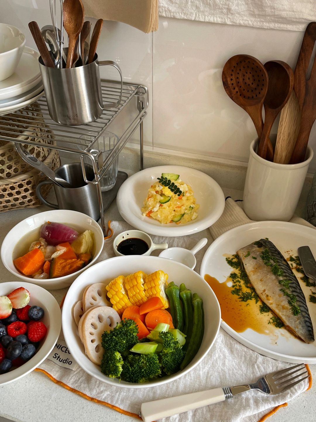 🐟青花鱼🥦西兰花🥕胡萝卜🧅洋葱/藕片