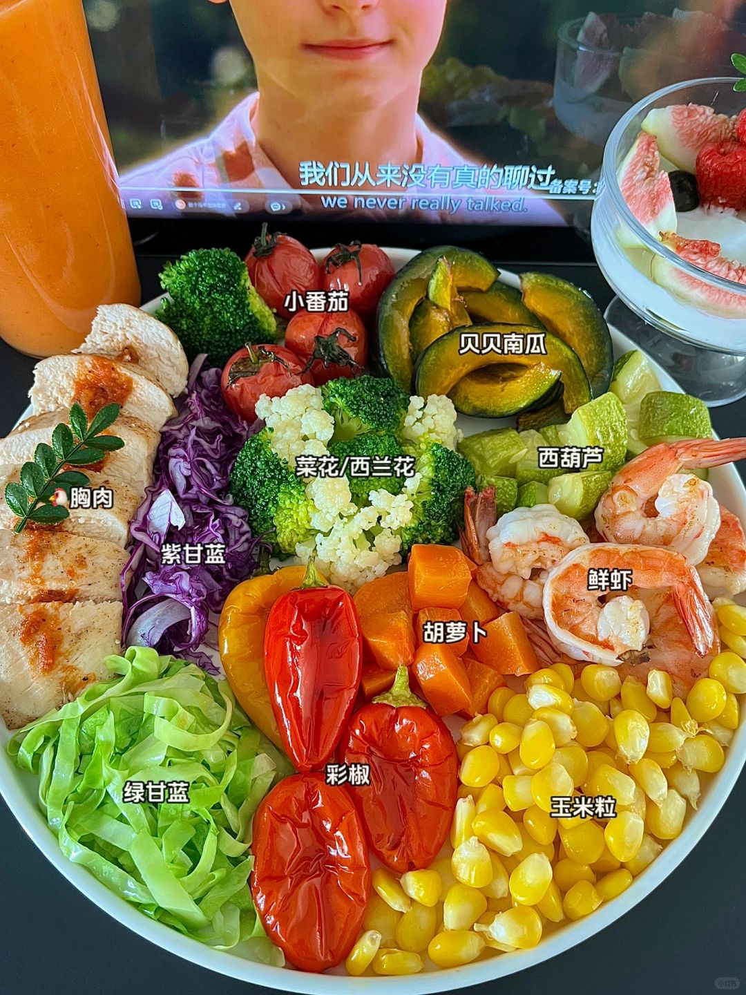 药铺。 - 抗炎饮食第84天了 除了感觉肠道通畅了 早晨起来脸不水肿了 身体的无力感 也缓解了很多 每天更有精神了 三餐正常吃 体重下降9.1斤 - 🏷今天早餐抗炎食物合集 🥦西兰花/菜花🎃贝贝南瓜/绿甘蓝/紫甘蓝 🍅小番茄🫑彩椒🥕胡萝卜🌽玉米粒/西葫芦 🦐鲜虾🐔胸肉/无花果🫐蓝莓/树莓/希腊酸奶 🍎苹果🍍菠萝 - 5分钟水煮:西兰花/菜花/胡萝卜/玉米粒 20分钟烤食:🐔胸肉/彩椒/南瓜/小番茄 2分钟快炒:绿甘蓝/鲜虾(煎) - 少吃荤腥多吃素,没有医生开药铺 古人诚不欺我。 -