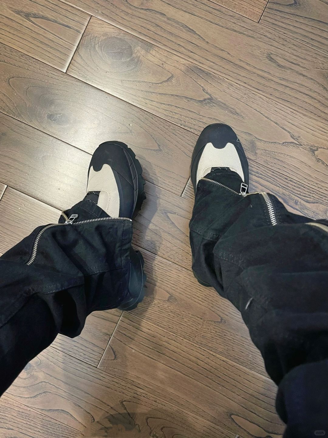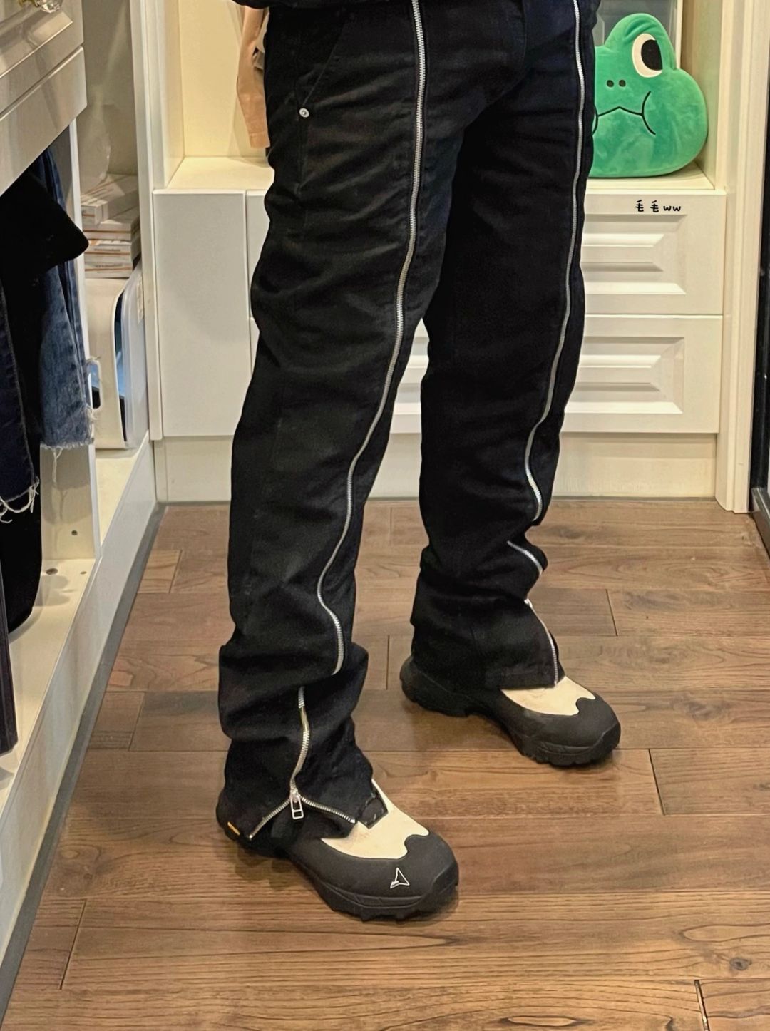 -留意Z家这条牛仔裤很久,终于忍不住尝试了一下;什么叫显腿长,太夸张了,大家看图体会吧 . -除了改变版型的拉链裤,侃爷的短卫衣也遥遥领先,附带all black的加持,妥妥的“假象”又高又瘦 . —————— . ✏️本人178cm75kg 球鞋尺码265mm(正常EU42) . 💭以上均为我个人观点,不喜勿喷,欢迎讨论。