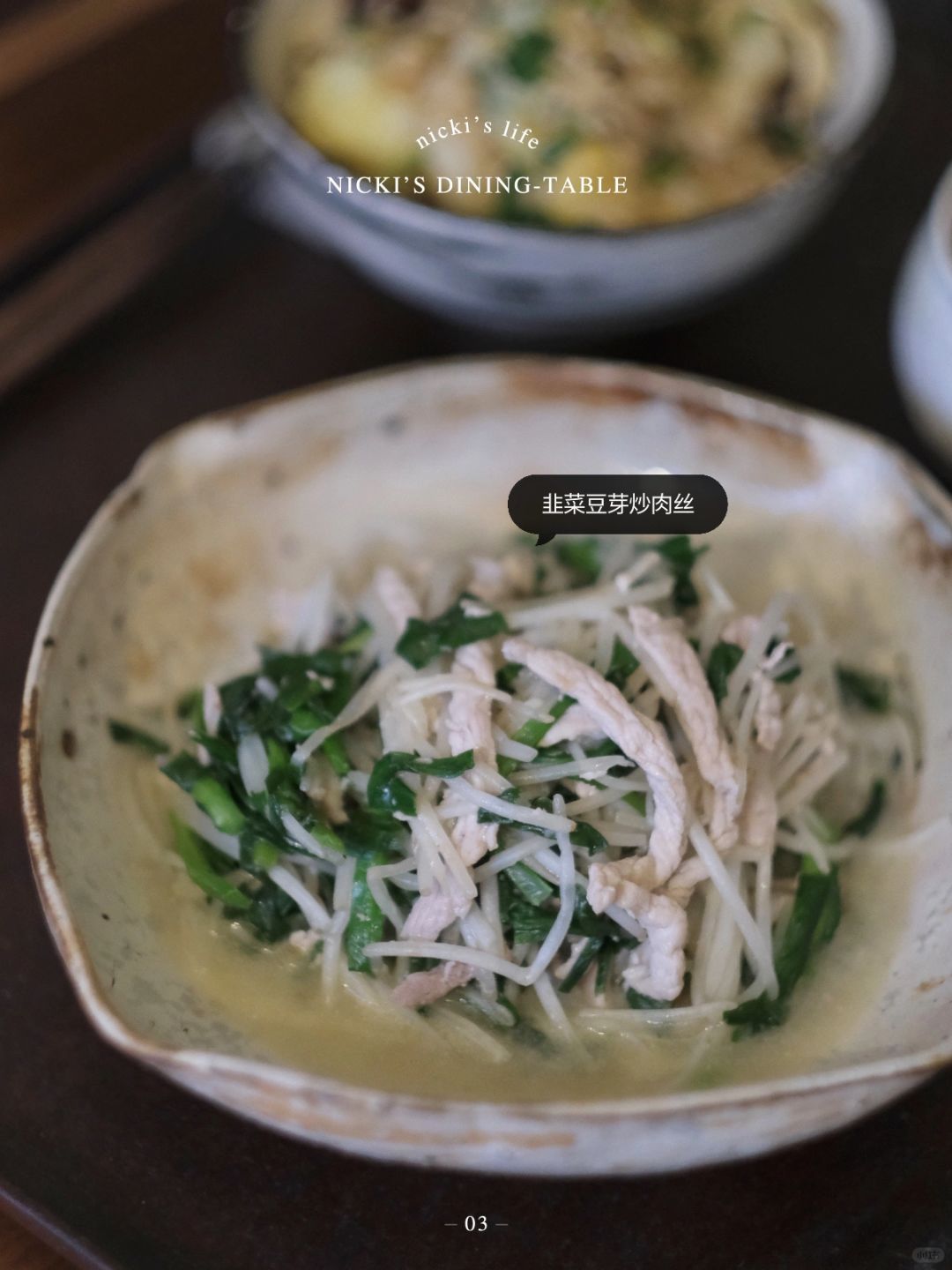 喜欢春天的时令菜,嫩绿、鲜甜的蔬菜,每一口都能感知春天来了。 在对的时间吃对的食物,珍惜时令,有的食材错过便是一年… 🥗 菜单: -冬去春来焖饭 -韭菜豆芽炒肉丝 -番茄蛋汤 🥣 作家器: -四方钵:荒川真吾 -碗: 尾形笃 -小圆钵:辻村唯 日式餐桌|家庭料理| 器物之美|日本作家器|家常菜|晚餐吃什么|时令菜|焖饭|春季餐桌