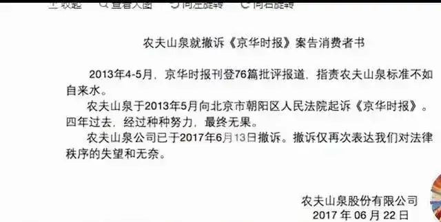 农夫山庄如果对这两个能辟谣一下,才是真功夫。一个是央视2013年对农夫水源附近遍地垃圾的质疑,一个是被京华时报连续76篇批评报道向法院起诉,但最后撤诉了。看看这两个能否解释清楚
