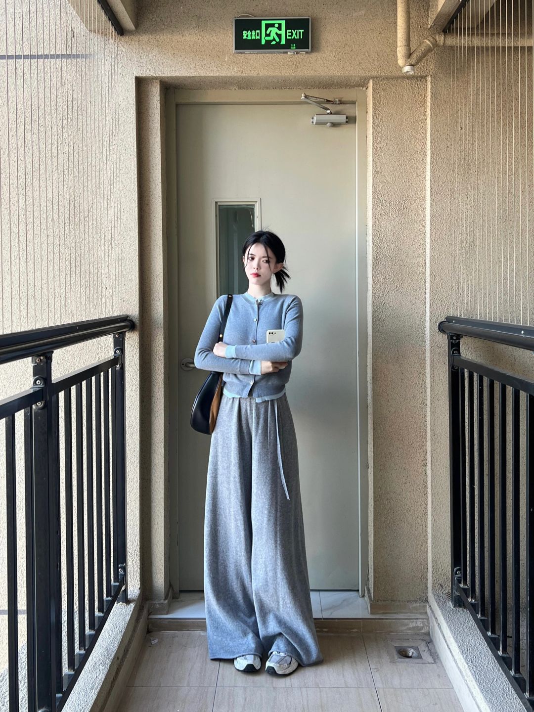 慵懒感穿搭 不费力气的穿搭 今天穿这样 针织裤 开衫