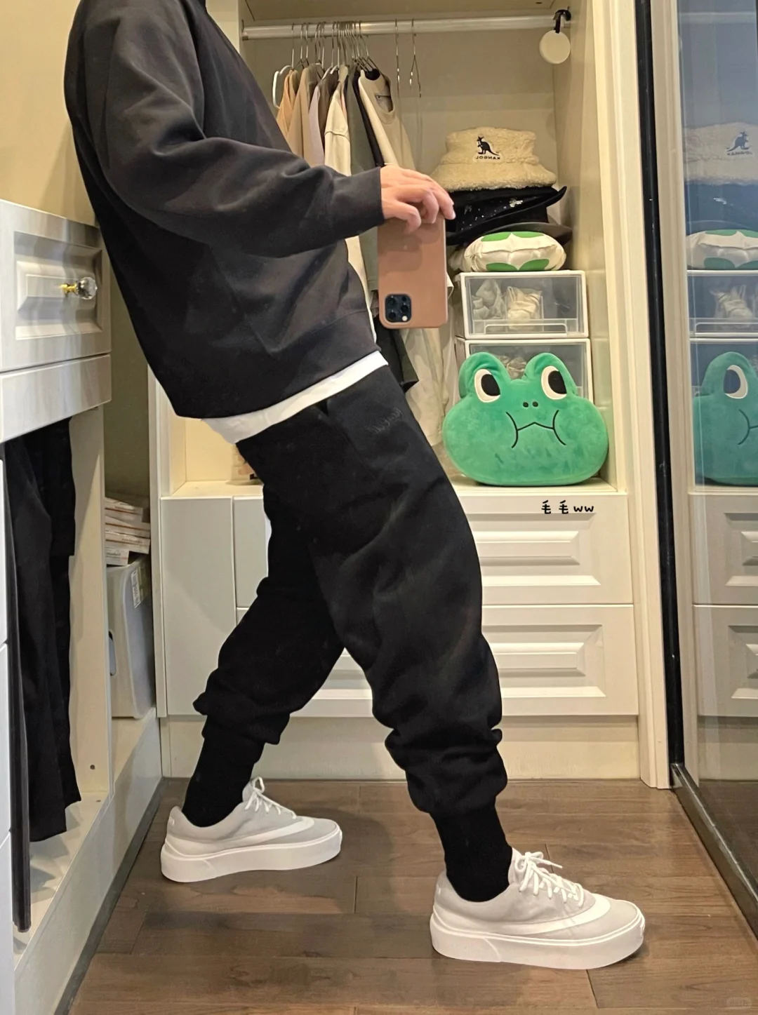 -懒人穿搭又来了,简单的卫衣卫裤,适合春夏 -熟悉的黑白色系,注意下层次搭配,效果更好 -黑色系卫裤穿搭,硫化鞋轻松搭配,锥形束口 . —————— . ✏️本人178cm75kg 球鞋尺码265mm(正常EU42) . 💭以上均为我个人观点,不喜勿喷,欢迎讨论。