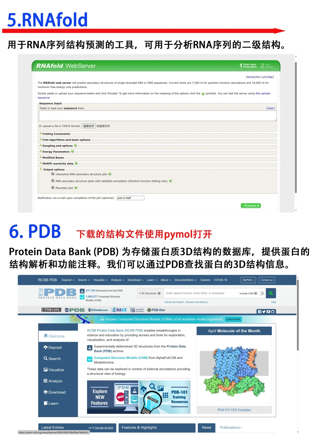 [学生党R]Hi~本期跟大家分享几个关于核酸蛋白序列分析相关的小工具,大家都用过哪些呢? 1⃣️ESPript 2⃣️NCBI BLAST 3⃣️CD-Search Tool 4⃣️Primer-BLAST 5⃣️RNAfold 6⃣️PDB 7⃣️InterProScan 8⃣️UCSC Genome Browser 9⃣️SWISS-MODE 满满的干货,欢迎大家👍收藏,一起讨论交流呀