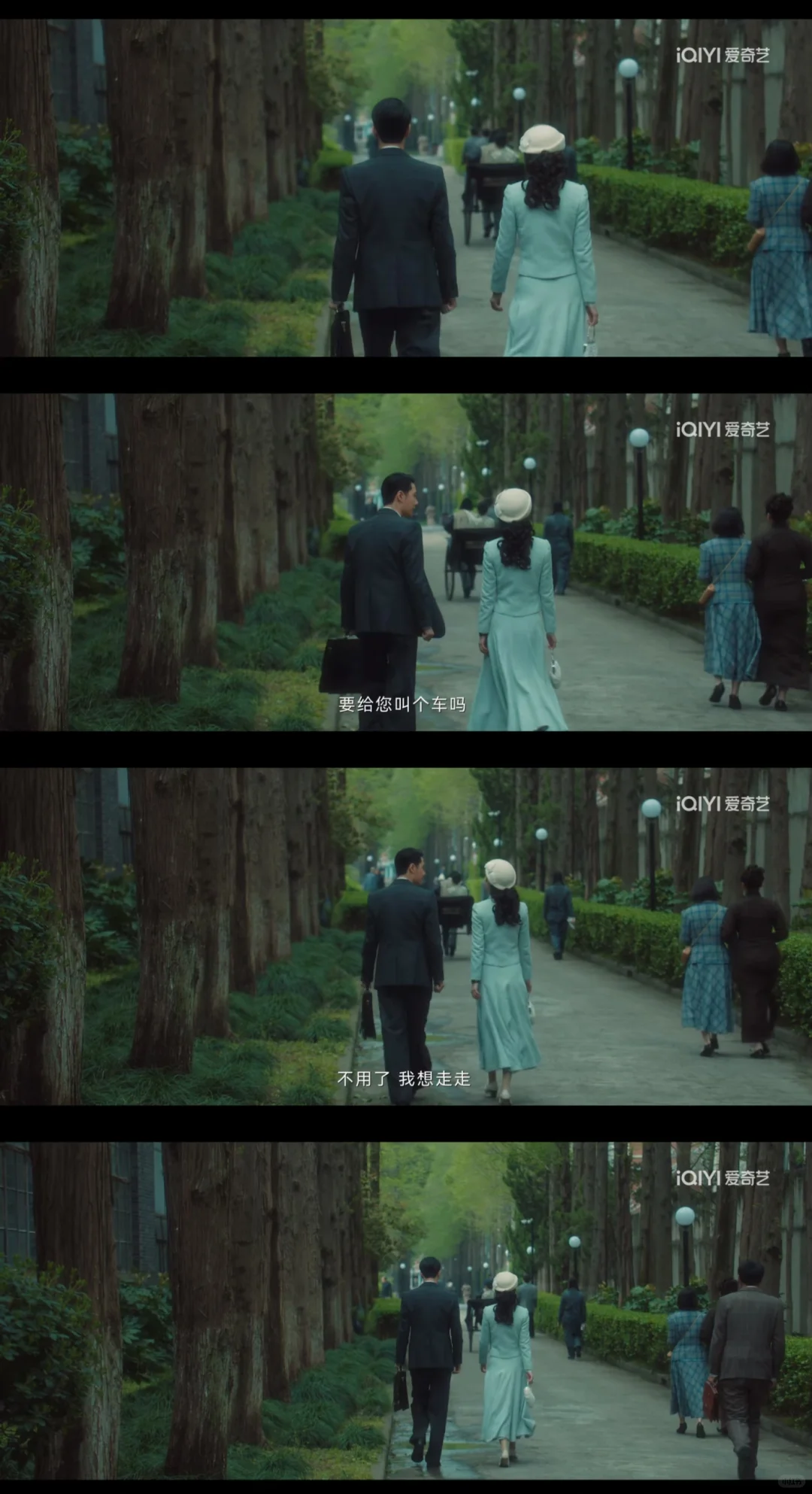 新出场的“未婚妻”牛春苗也真有趣。嘴皮子够利索,人也够机灵,赚钱走江湖不在话下,卖生姜,找近真要魏若来“转让费”(魏若来=50大洋,哈哈哈),并已展现出投资的本事,刚来上海便想做租房生意,真的做成了,指不定能玩转上海的housing market,就是不知这位可可爱爱的“未婚妻”是不是也是立场攻略的一环……烟火满满的七宝街弥漫着朴实的人情味,聊天,散步,阿文拉着黄包车满城跑,周姨又涨了房租,满头银发的爷叔喝着茶,吃瓜群众听八卦……可惜今天不是大结局,时间无法永远停留在这一刻。时代的一粒沙,落在个人头上是一座山。乱世容得下多少爱情?不知道,但人性的温暖已经足够令人打动。