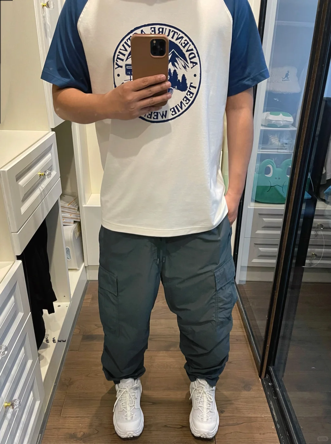 -拼接元素除了熟悉的条纹的运用,插肩体恤也很常见,搭配一条口袋工装裤毫不费力 . -喜欢尼龙材质的单品,适合春夏的轻薄感;藏青色调,柔和的湖水蓝,确定不试试么 . —————— . ✏️本人178cm75kg 球鞋尺码265mm(正常EU42) . 💭以上均为我个人观点,不喜勿喷,欢迎讨论。