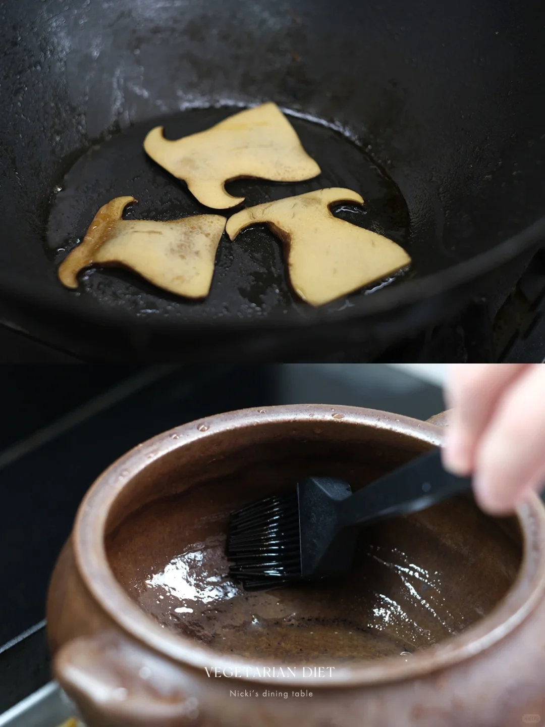 •牛肝菌片用锅中多余的油,两面煎一下即可盛出。
