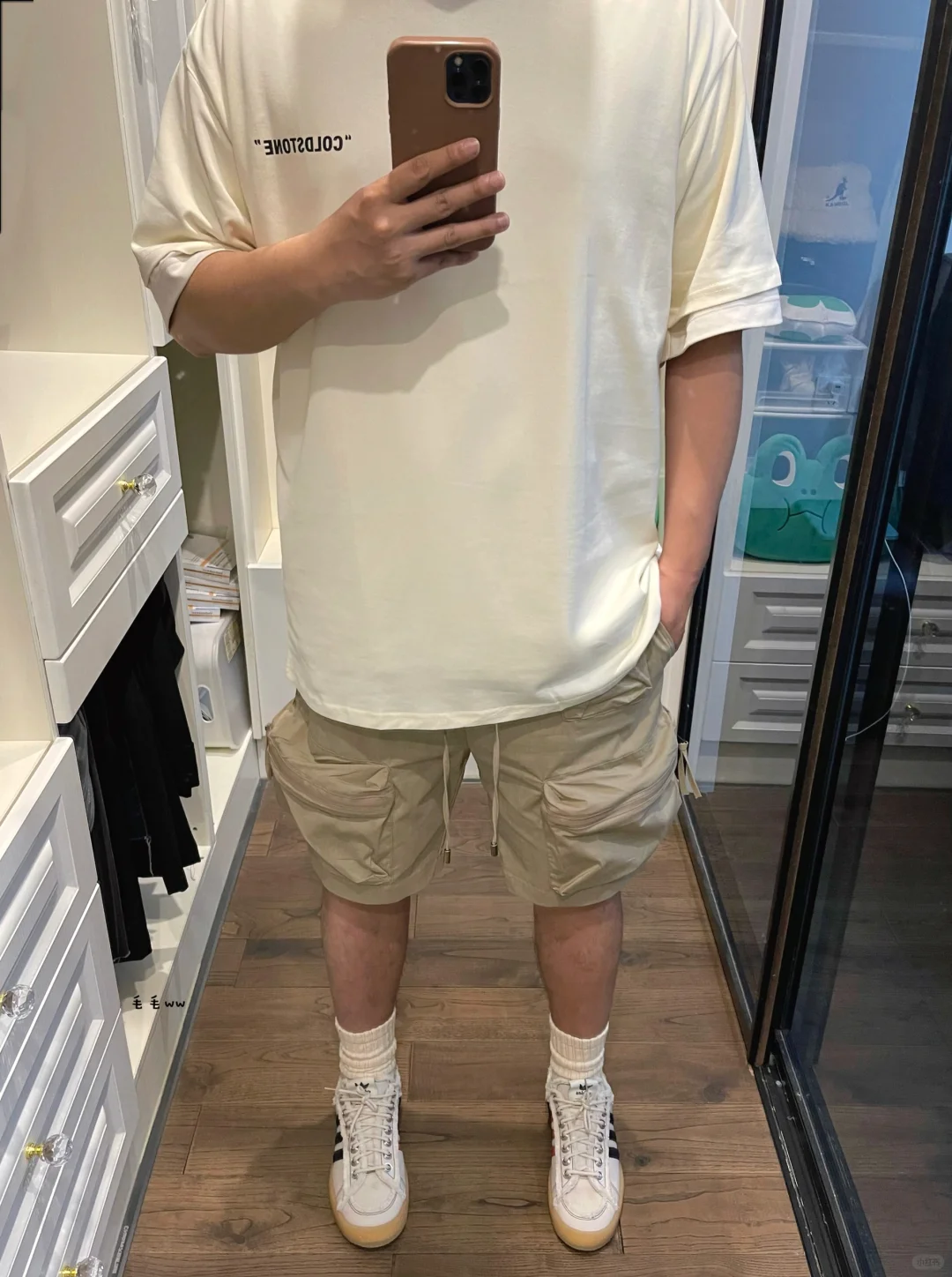 -newvintage怎么能少了米色调,自带复古味儿 -简易体恤叠穿,大口袋工装风,轻便尼龙短裤 -长袜球鞋,也与整身保持同色系,层次感契合 . —————— . ✏️本人178cm75kg 球鞋尺码265mm(正常EU42) . 💭以上均为我个人观点,不喜勿喷,欢迎讨论。