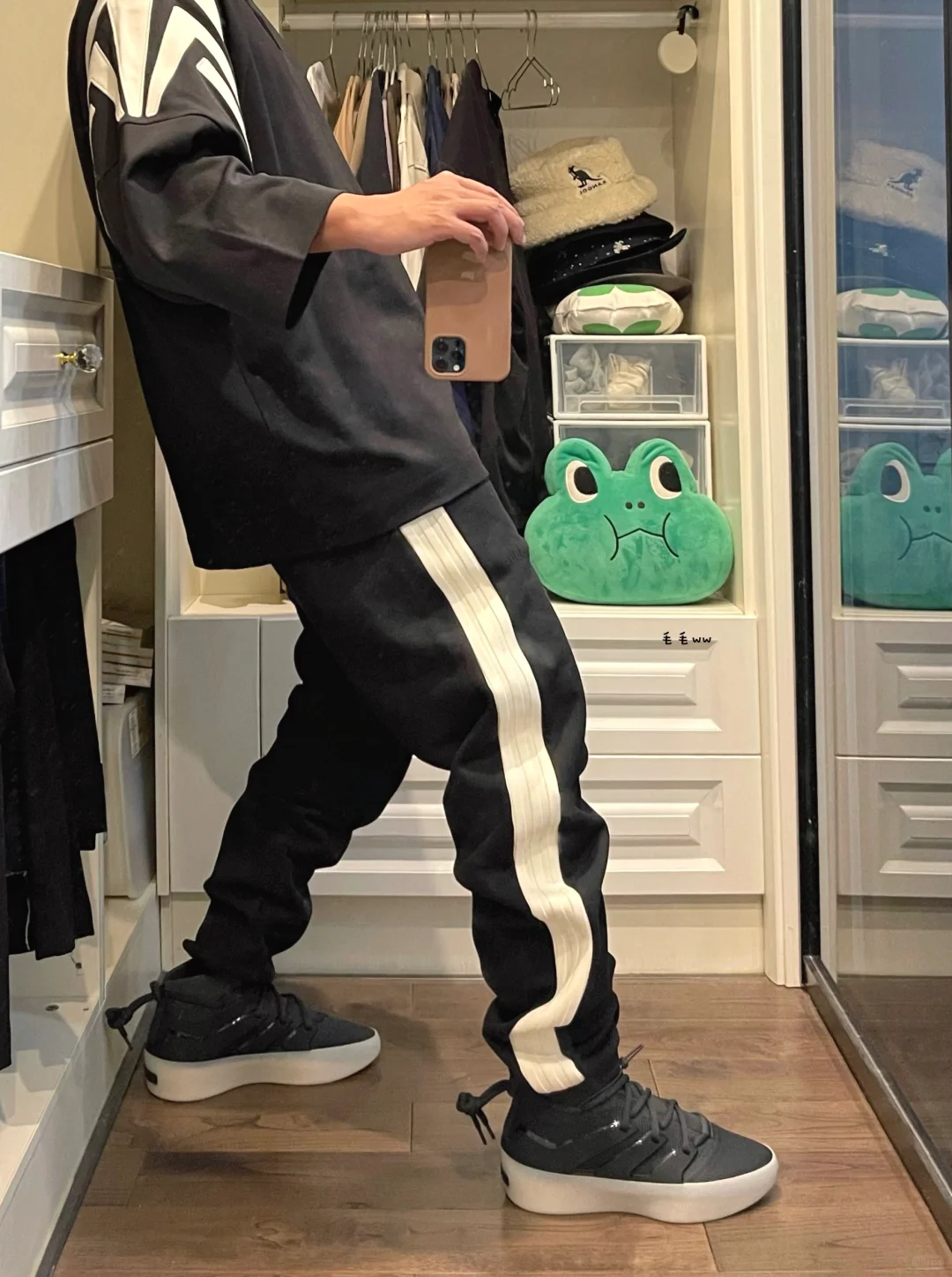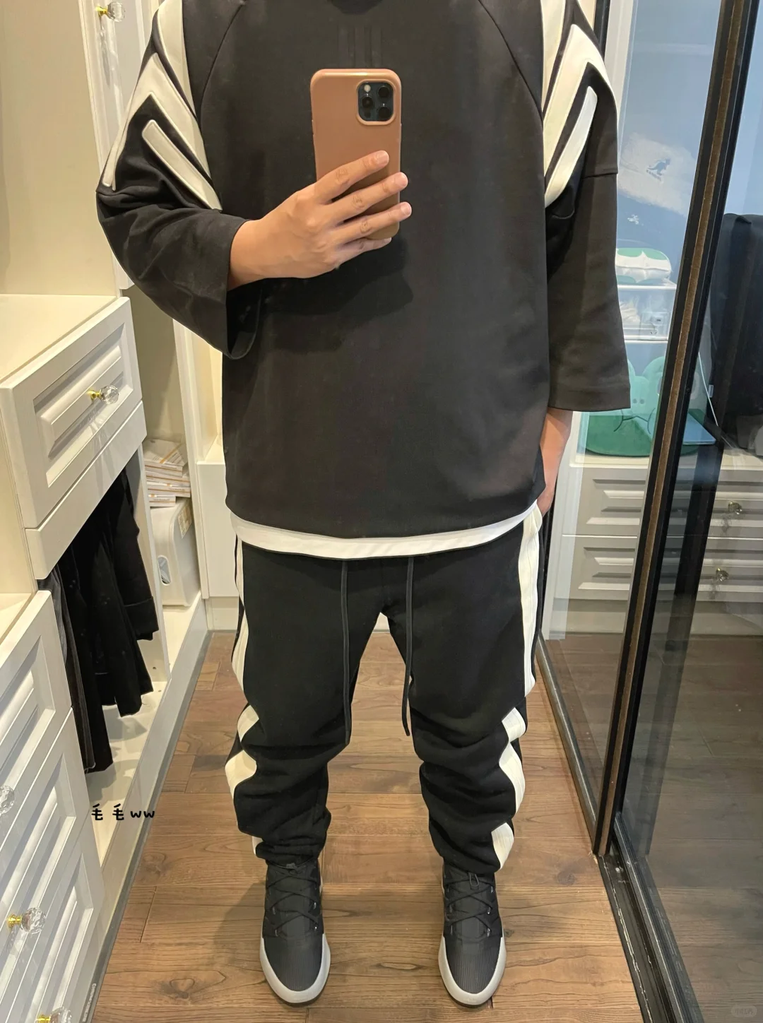 -本期聊聊Athletics的裤装(厚款长裤);目前市售有两个版本,因为是不同档位,相差500也可以区分 . 1. Sweat Pants,束脚卫裤。开季的全黑、本季的黑白、古白、灰白,低段位都属于棉质高克重,加厚加绒 . 2. Tracksuit Bottoms,拉链直筒。修改了裤脚细节,配色材质跟高段位束脚裤一样,独特手感,加绒偏轻 . —————— . ✏️本人178cm75kg 球鞋尺码265mm(正常EU42) . 💭以上均为我个人观点,不喜勿喷,欢迎讨论。