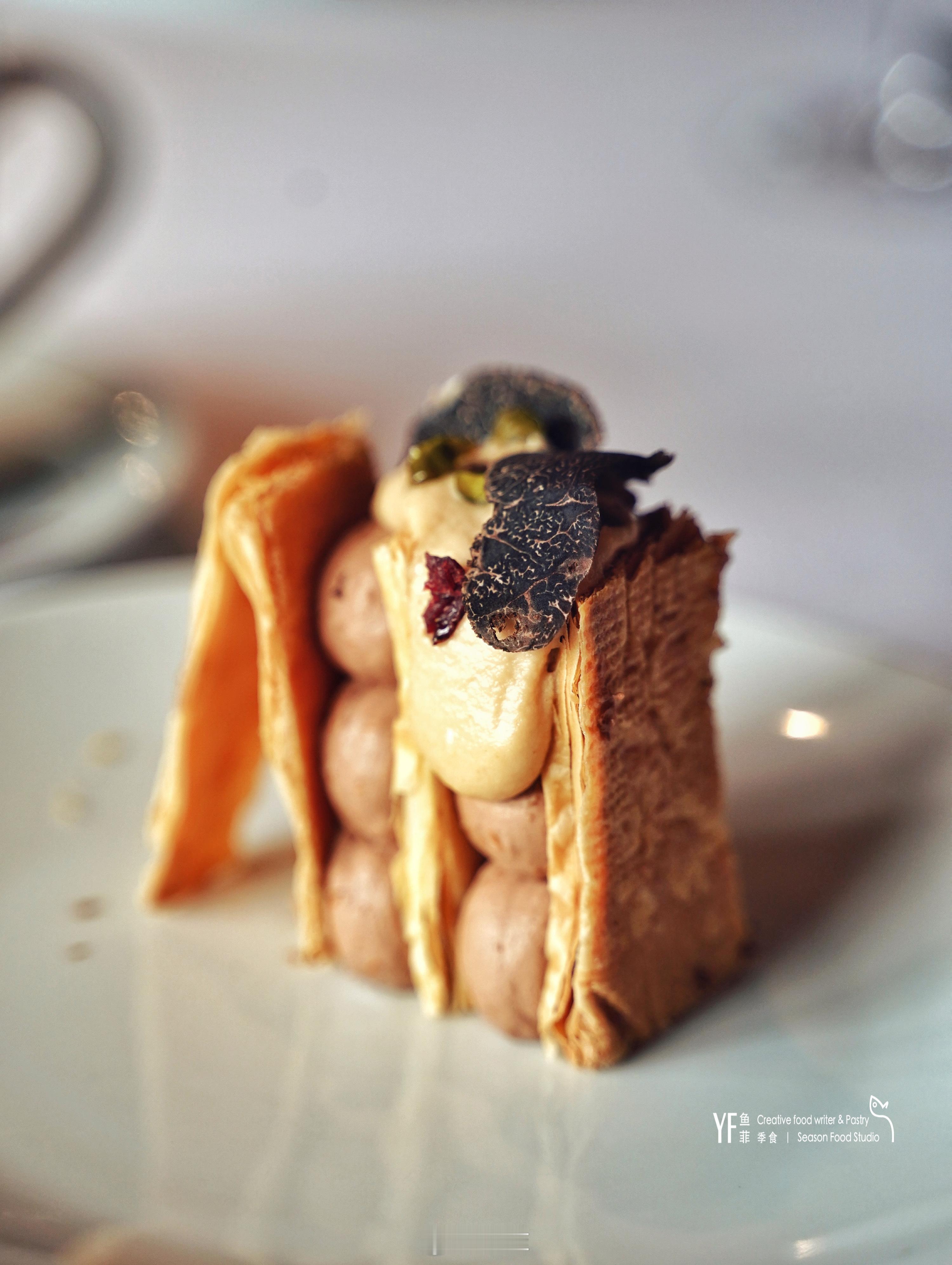 收官甜品也是高品质食材暴击,以一整颗猫山王制作的榴莲拿破仑,以及意大利黑松露与烟熏黑巧克力拿破仑,双将会师,若是拿破仑再世,估计也难敌这迷人心窍的“热恋圆舞曲”了。