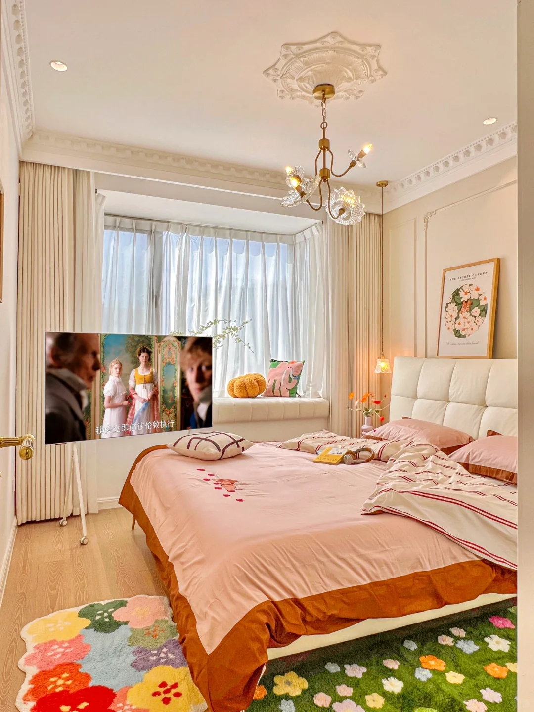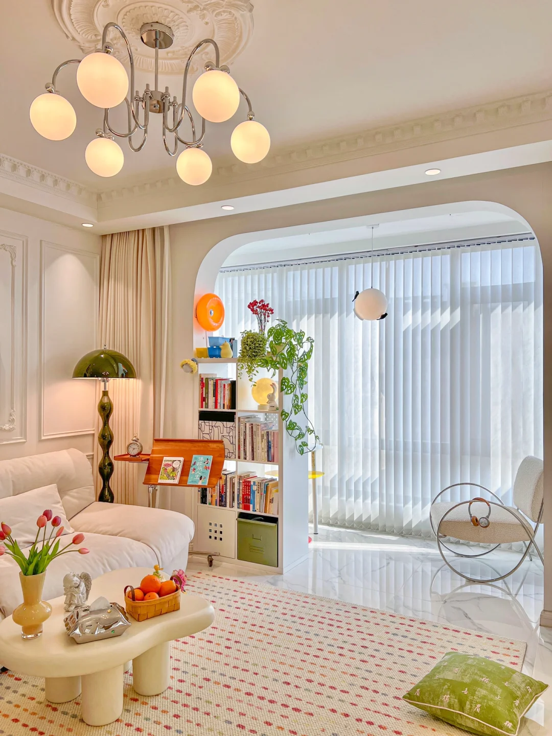 ▪️客厅中央灯盘直径77cm,搭配银白色的蝴蝶结吊灯,给我家增添了法式典雅的气息