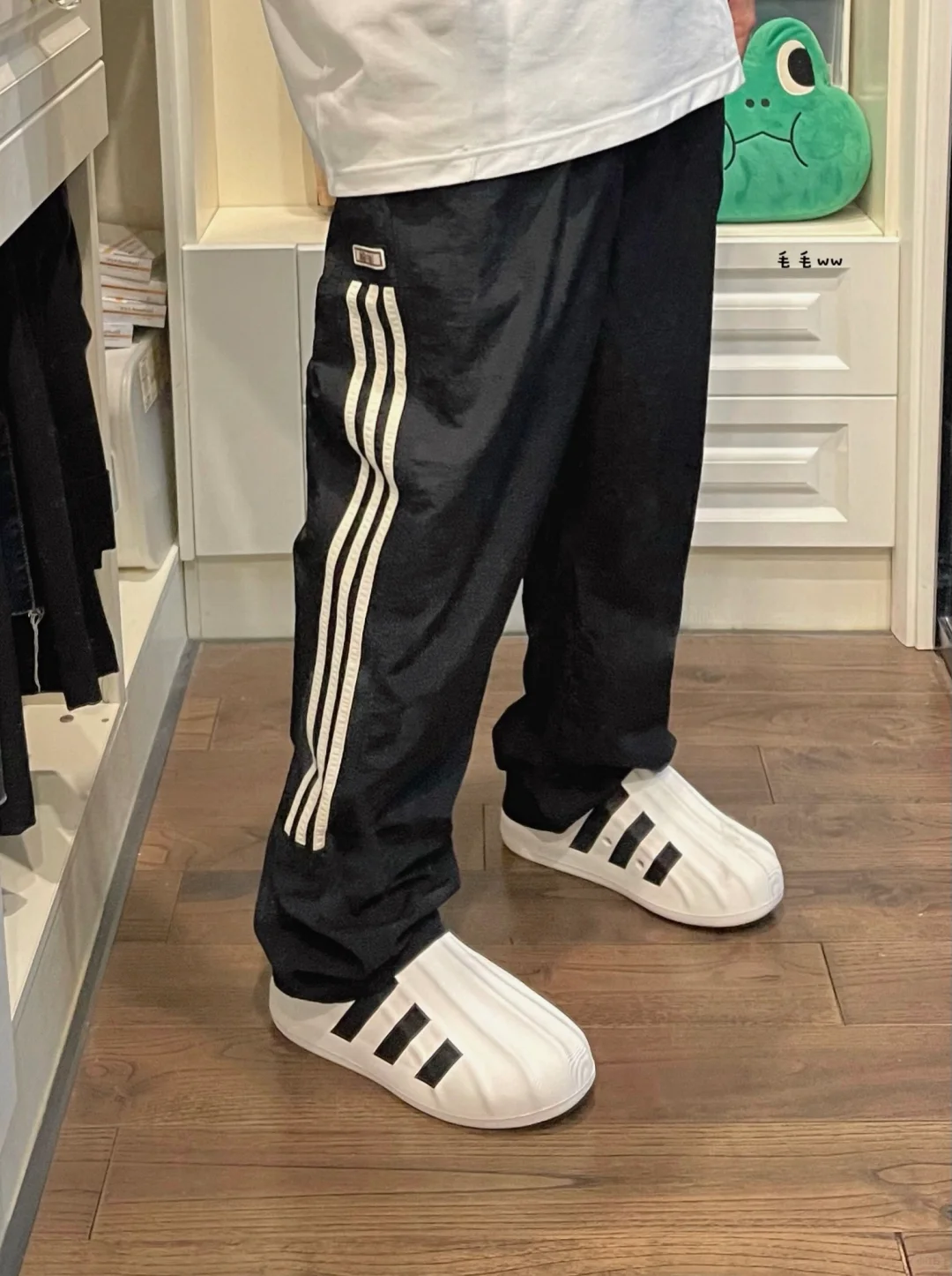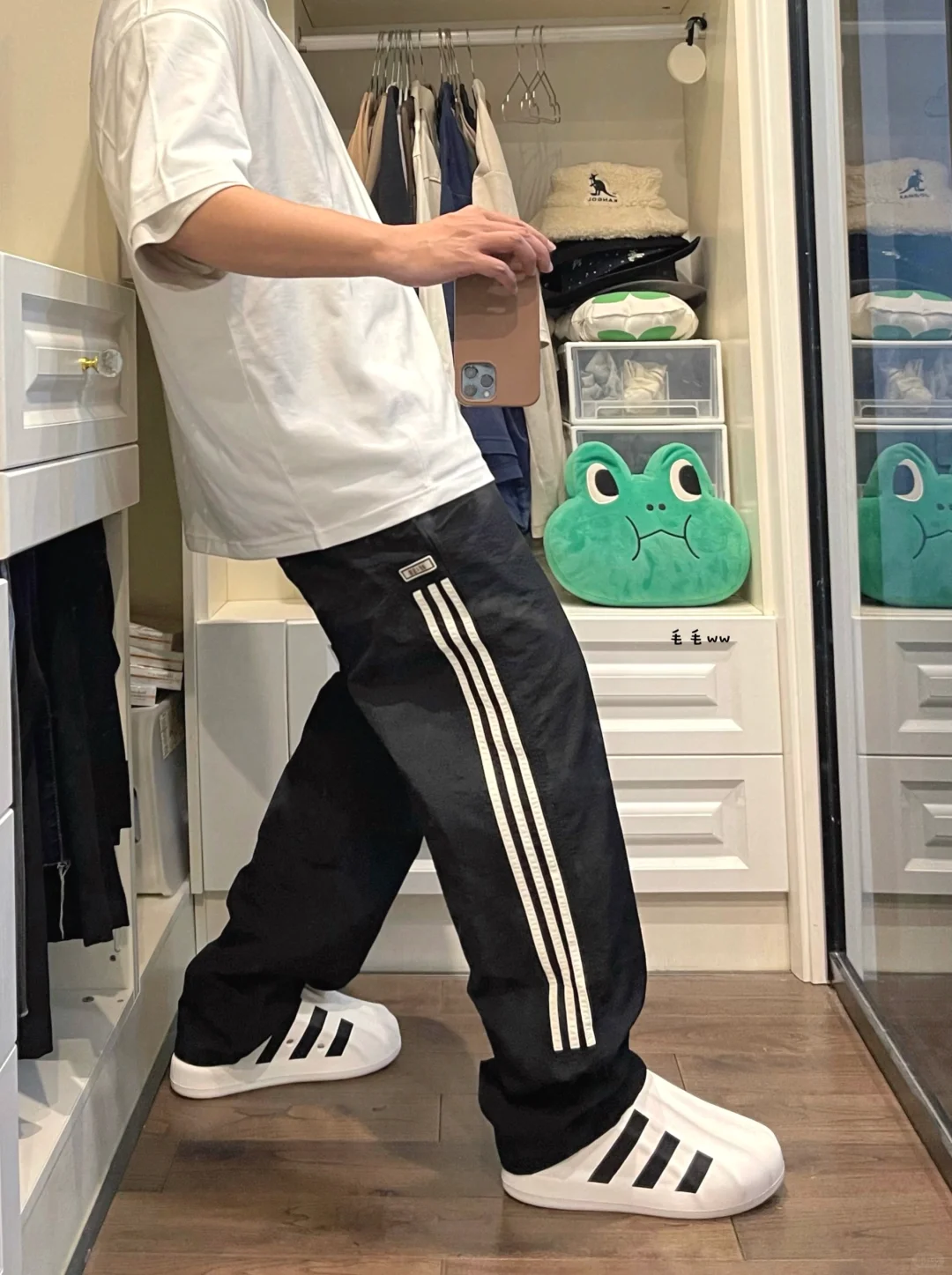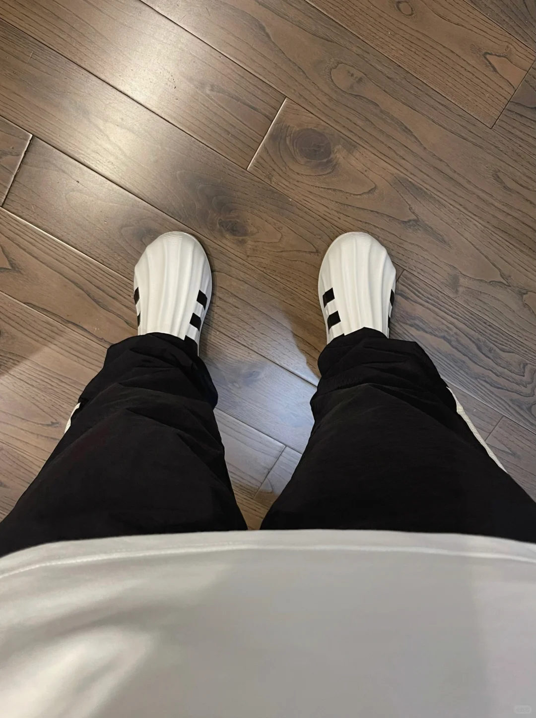-什么时候开始到处找三条杠的单品,说明阿迪真的好起来了,条纹裤洞洞鞋先来示范一下 . -白Tee应该怎么穿,作为春夏高频率单品之一,推荐一个白-黑-白的层次(上装-下装-鞋款) . —————— . ✏️本人178cm75kg 球鞋尺码265mm(正常EU42) . 💭以上均为我个人观点,不喜勿喷,欢迎讨论。