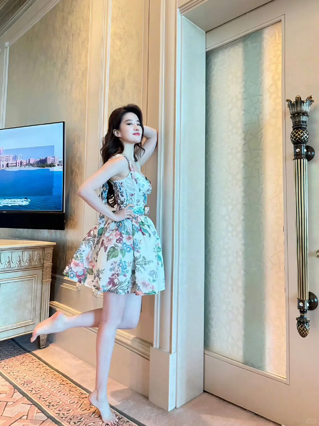 打开wb,发现亦菲有更新,说“发存货”。这组照片可爱又随性,像是参加派对前在试新衣服,在镜子中瞧自己的样子,一点雀跃,一点欢喜。她脸上偶尔会流露出天真与娇俏的神情,让人想起清新秀美的诗,“水晶帘动微风起,满架蔷薇一院香。”又让人想起她小时候穿着公主裙去要糖果的模样,甜甜的笑,大大的眼睛,她真的是等比例长大。不穿高跟鞋比穿高跟鞋更有味道,踮起脚尖的样子,是天鹅在起舞——湖光山色,皆在你身后。