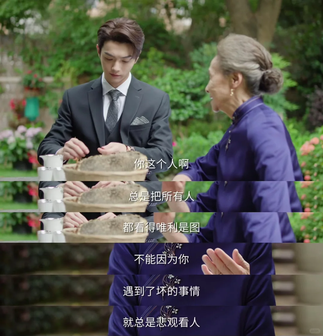 招标会的布局,他理智又冷酷,但收网的时候想让麦承欢避开,后来又要调查邮件是谁发的,他是不想让她身陷囹圄;他调她的岗,也是侧面在帮助她积累重要客户资源;两人一起陪祖母旅行,虽然从路上开始就一直在拌嘴,但“逗她开心”的想法总是有的。我看14集预告,麦承欢挨揍,他冲上去就挡了。他在试探她,了解她,观察她的性格以及可能出现的情绪,说来说去,是理智与情感在博弈,且是后者逐渐占上风的过程。种种表现,皆因在意。