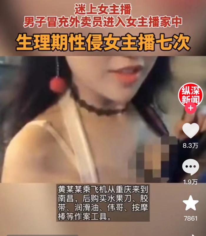 江西南昌,男子爱上一名女主播,假意点外卖,得到了女主播的地址后,乘飞机来到女主播家里,不顾女主播生理期特殊情况,强行与她发生6次X关系,还拍下不雅视频,最后还向女主播索要2000元!警方打开男子装着“作案工具”的背包后,惊呆了!