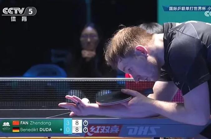 男子世界杯男单小组首轮,樊振东以4-0完胜德国选手贝内迪克特·杜达,展现强大实力!