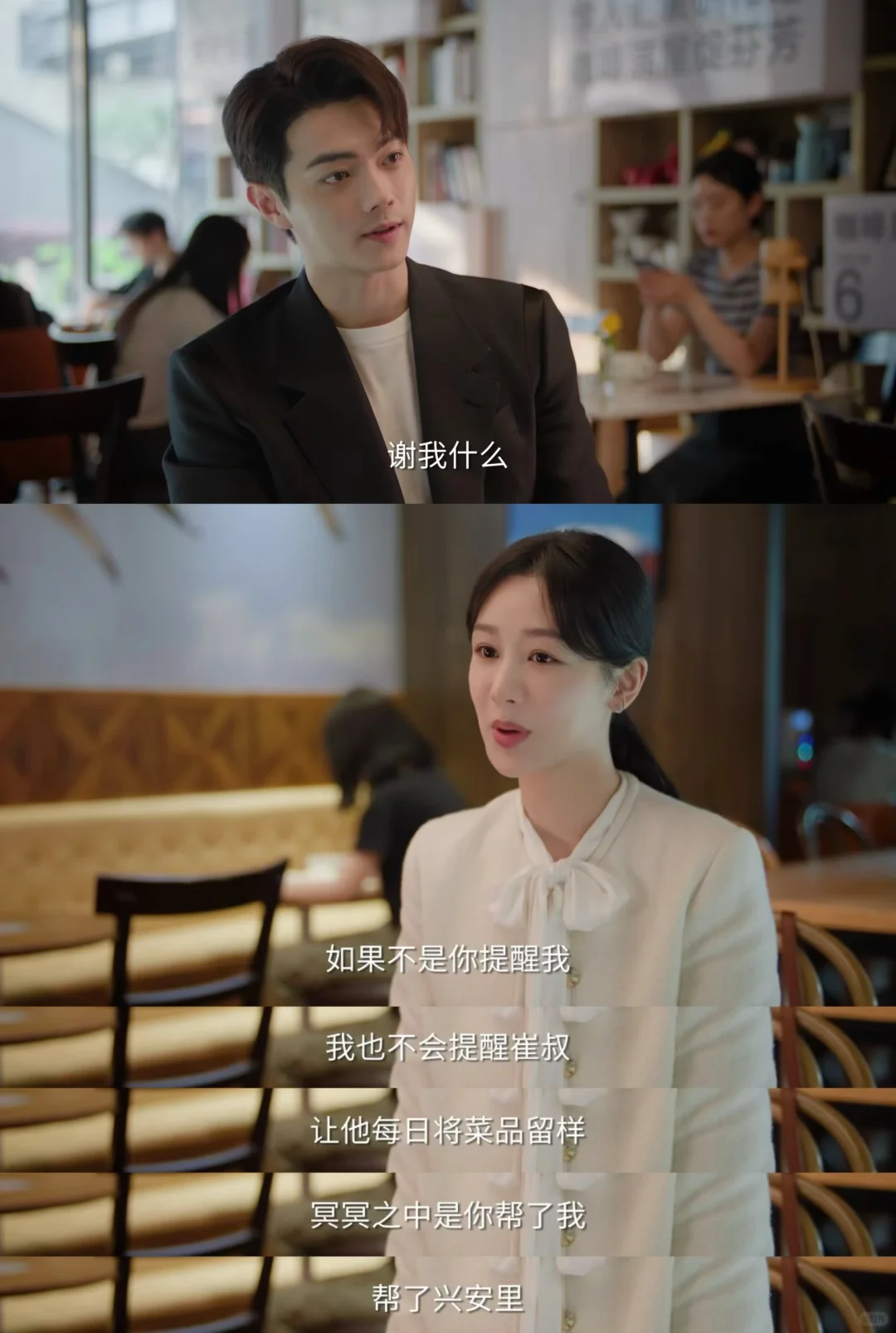姚志明的表白可以当作两个足够默契的人的相处范本看,他们对彼此给予了充分的尊重和理解,所以沟通极其丝滑。工作上的事,他们就事论事,事实就以对方说出来的内容为准,不做过多延伸;私人感情方面,姚志明已经明确意识到自己对麦承欢的喜欢,这种情感,麦承欢多多少少感知了一些,虽然姚志明的表白她明面上没回应,但实际上给出了积极信号。一个小细节:姚志明问麦承欢“如果喜欢一个人,也要当面表达吗”,她要是对他无意,就会说:“看情况,有时候吧,当面表达挺尴尬的。”但麦承欢说的是:“喜欢一个人,当然要了,如果不说的话,万一两个人错过了,怎么办。”她固然是在客观表达自己的看法,但细品之下这句话也是一种鼓励,以她的性格,如果对姚志明没好感,姚志明那句“我喜欢你”连说出口的机会都没有。她对他好感不浅,这个事实姚志明立马Get到了,所以第二十一集末尾何东问他跟承欢的进展,他才会说:“反正是个好的开始。”