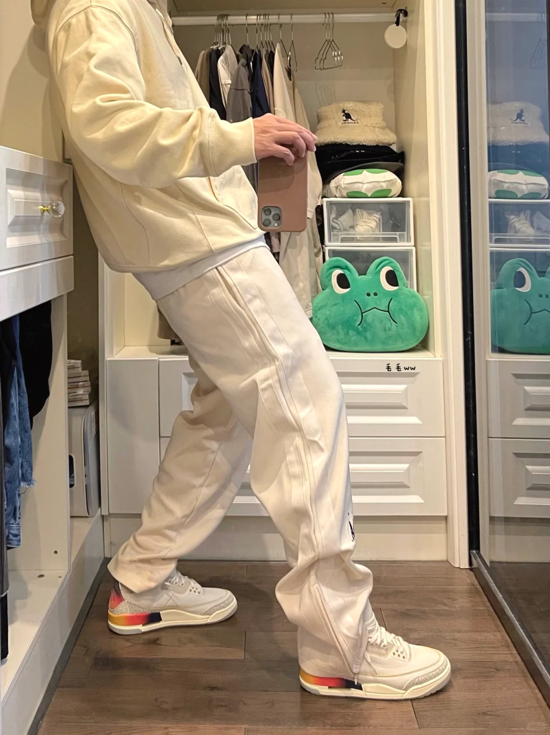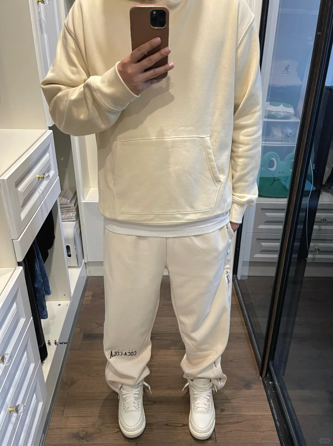 -除了束脚卫裤,直筒卫裤搭配球鞋也是不错的选择;裤脚的拉链小细节,可玩性十足 . -奶油色系,米白米黄,这类奶敷敷的配色真的很治愈;大廓形卫衣卫裤,增加松弛感 . —————— . ✏️本人178cm75kg 球鞋尺码265mm(正常EU42) . 💭以上均为我个人观点,不喜勿喷,欢迎讨论。