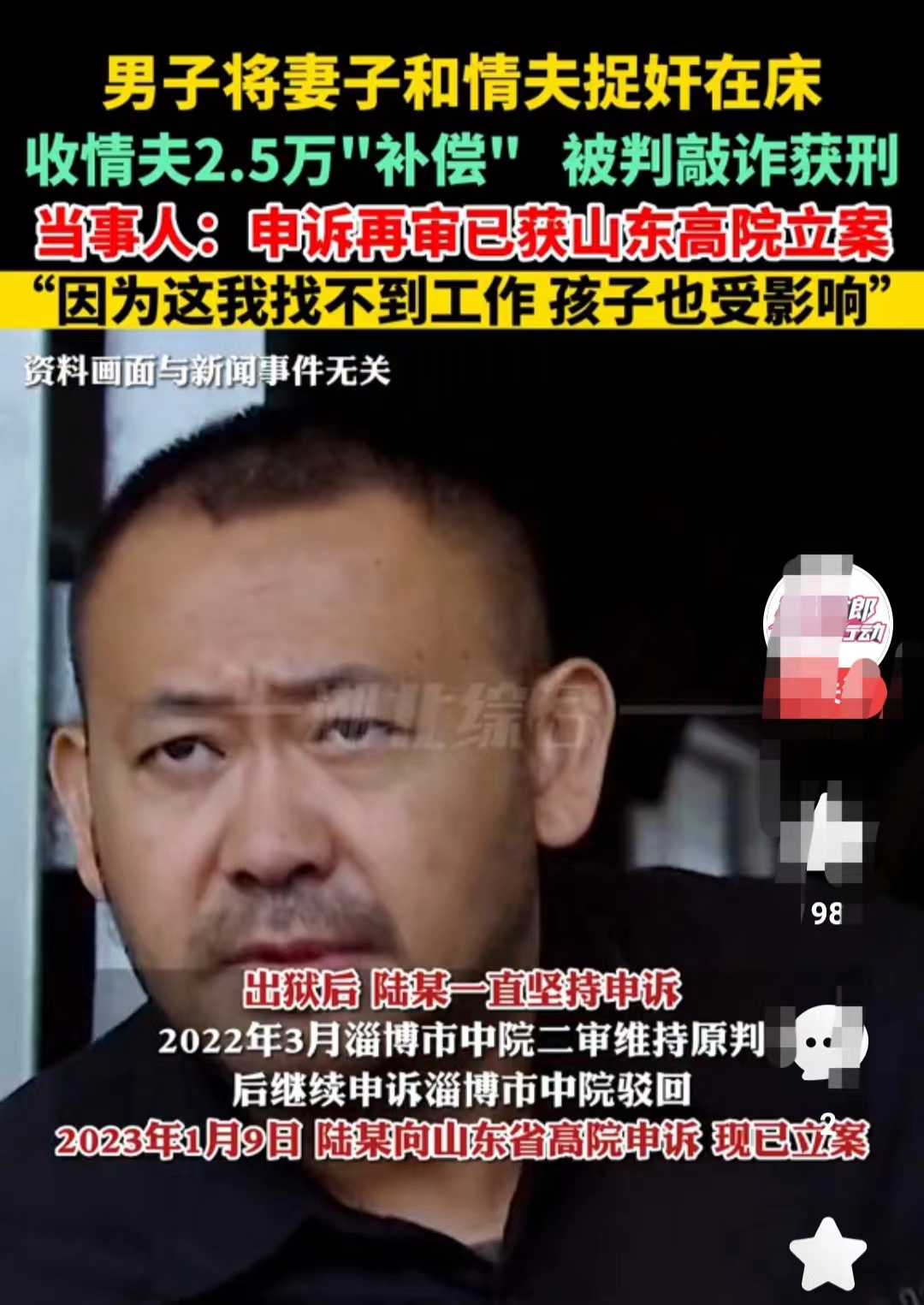“最惨绿帽哥!”山东淄博,女子与情夫正在约会,被丈夫发现后捉奸在床。情夫为了脱身,主动提出赔偿,并向女子的丈夫转账2.5万元。不料,情夫脱身后,竟然选择了报警,女子的丈夫被抓,法院判了!