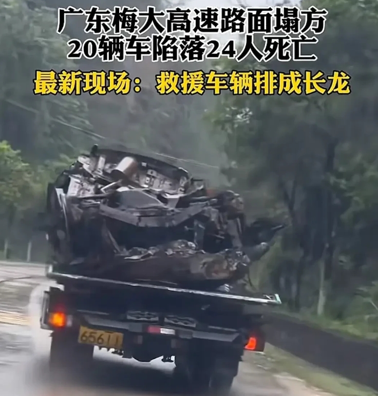 梅大高速路面塌方后的汽车残骸!其中一辆车的轮毂里都是土,这就是为何死亡人数在上升原因,因为增加的人数都是从塌方现场后来救援的时候发现。 从昨晚到现在,住院的人数一直没有变,都是30人,更说明从十几个到48个不停更新的死亡人数数据都是被挖出来确认。 这场车祸会记入史册,希望能推进已经建成的高速公路养护人员的责任心。除了地震,无论是塌方,还是滑坡,都不会毫无预兆。