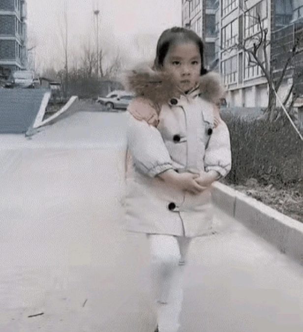 但那小表情却像是在说:叫你跑,叫你跑,你闺女掉队了都不知道!