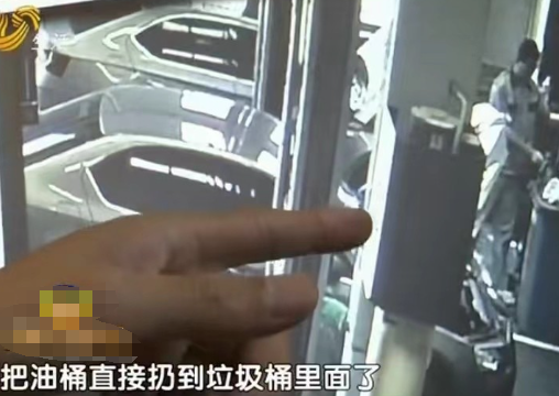 原来桶里装的根本就不是机油,而是黑乎乎的废油!