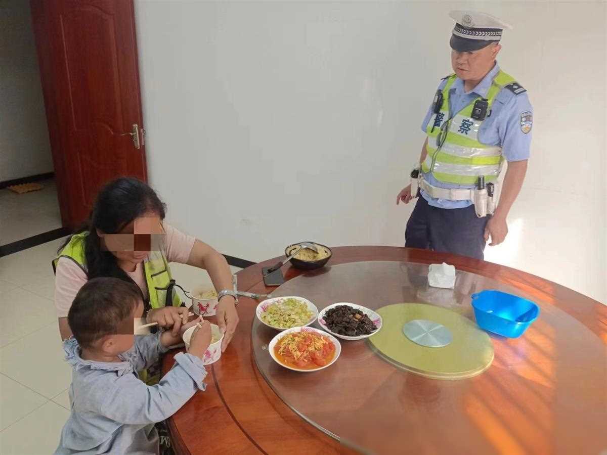 交警到现场后看见这对母女如此狼狈,赶紧把他们接回了警局,还准备了饭菜。