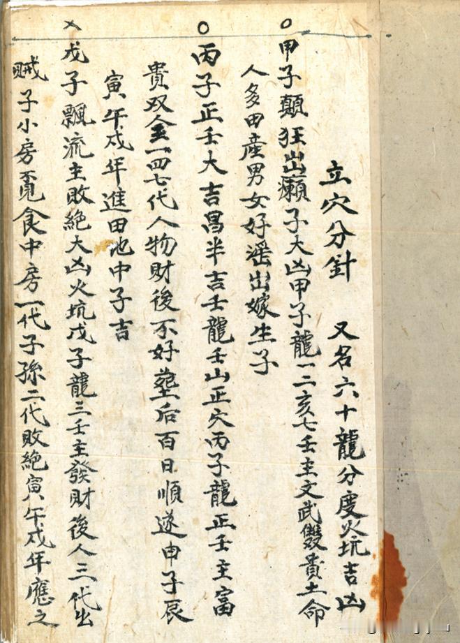 风水古籍《立穴分针》手抄本 🧧米米: 25 📖页数: 60双页118页 🆕简介: 立穴分针(又名六十龙分度火坑吉凶)十二生肖所犯诸事吉凶,论二十四山分金吉凶,阴阳妙用二十四龙所主吉凶,二十四山,青囊经,杨公枕中秘,四龙经,新增寻龙点穴五行生旺尅浅歌,五行生尅论,杨救贫入门针法断吉凶,荡针断法,欺针断法,二十四山葬造开金井尺寸尅应法,论二十四山运五行尅应,九天玄女尅应,论看针法等等