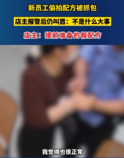 警察来了以后要求员工删掉手机内拍摄的配方,这名新员工还叫嚣“这很正常”“不是什么大事”“你这是包庇本地人”,最后还是把手机里的配方删除了。