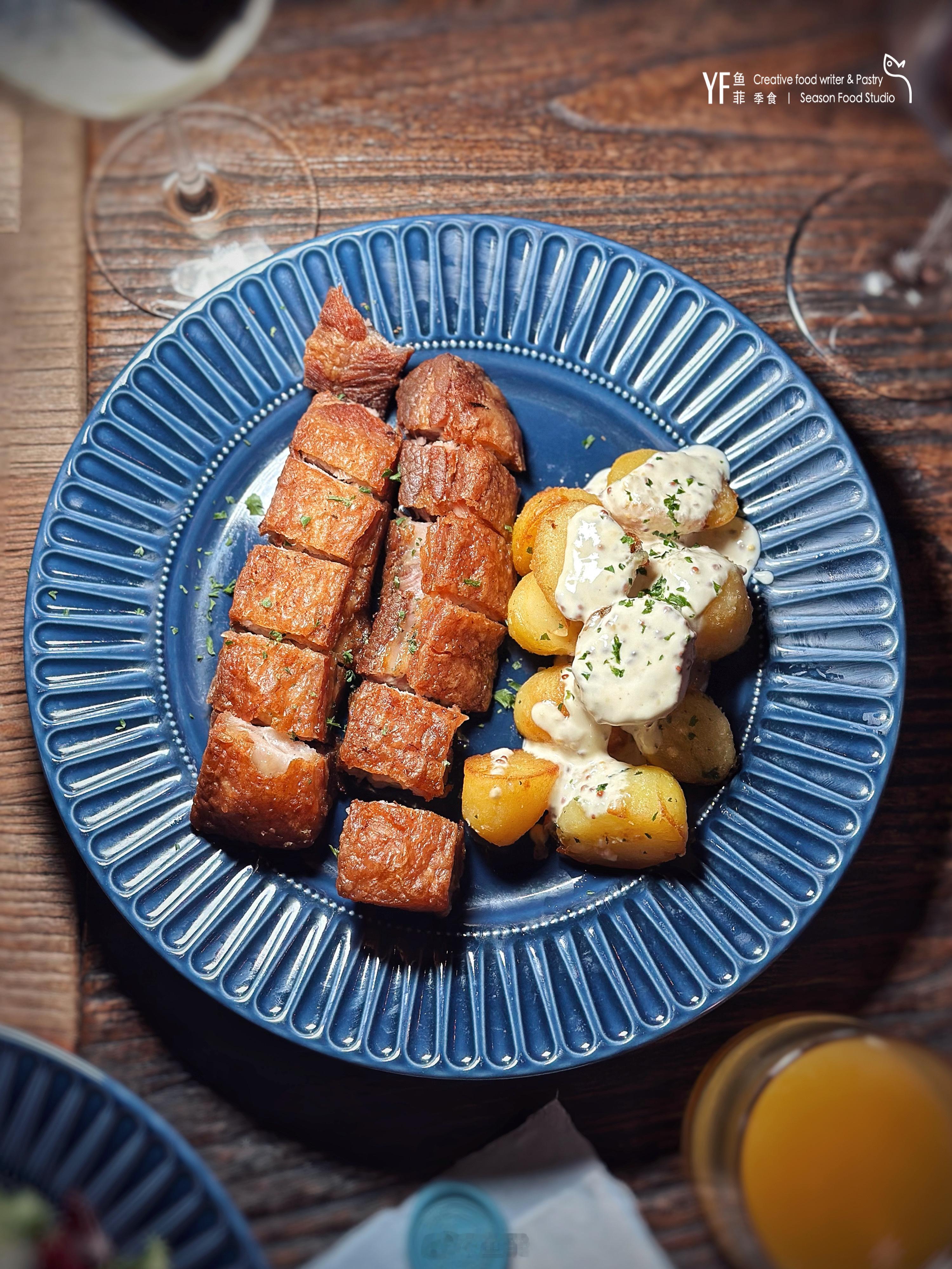 🥟另外皮薄馅多以奶油丰腴的黑松露猪肉意大利饺,以及炸得金黄的脆皮五花肉配芥末小土豆,烤蔬菜等等每一口都能感受到法式料理的精致与考究。