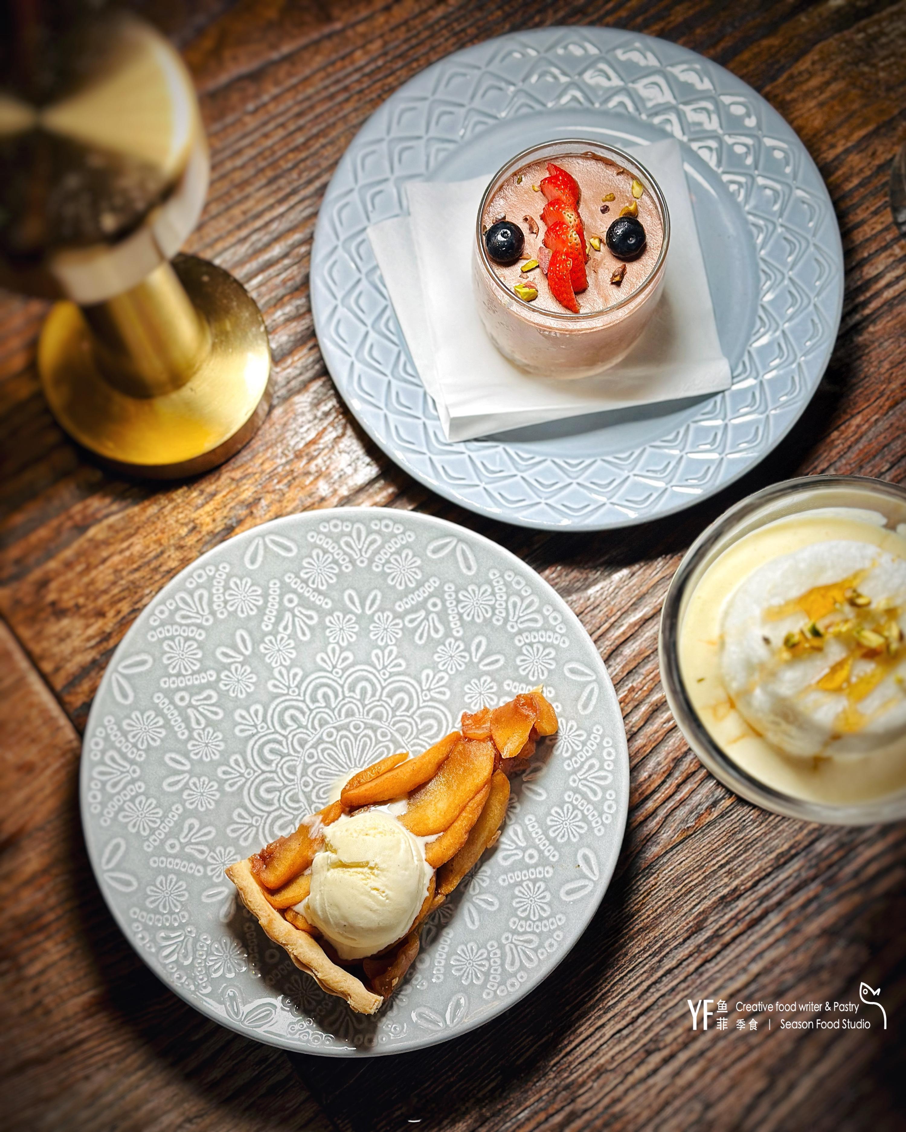 🍮收口的焦糖蛋奶冻与苹果挞配冰淇淋香甜滑嫩,口感细腻,是法式甜品的经典代表。苹果配上冰淇淋,温热的苹果挞与冰凉的冰淇淋形成了鲜明的对比,每一口都是绝妙的享受。