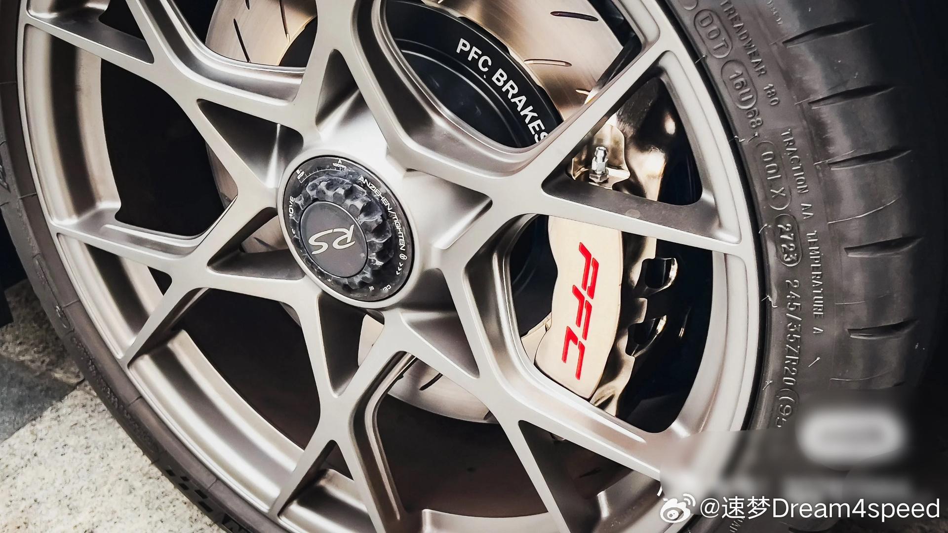 PFC分街道版和赛版,前者就是GT3 RS少爷装的最多的ZR95系列(图2),但只有380 Sport窄体套装可以勉强避开原厂轮毂【窄体只能22mm的皮,Race系列宽体可以26mm】,数据是真的屮,20寸8.5J ET60,没错,ET60… 中锁没法用垫片,破鞋完全没预留空间。最近有位老板装了380 Sport套装,可以看图7,这尼玛一热膨胀有风险蹭轮毂。