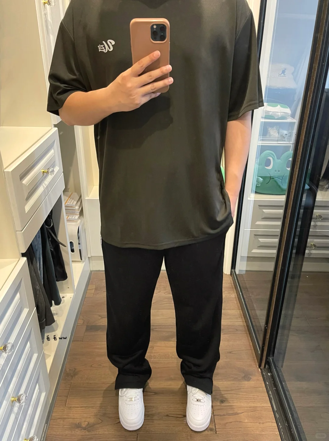 -全黑色系,拥有拉长比例的“魔法” -显高显瘦,简洁体恤搭配直筒卫裤 -空军一号,小白鞋永远是版本答案 . —————— . ✏️本人178cm75kg 球鞋尺码265mm(正常EU42) . 💭以上均为我个人观点,不喜勿喷,欢迎讨论。