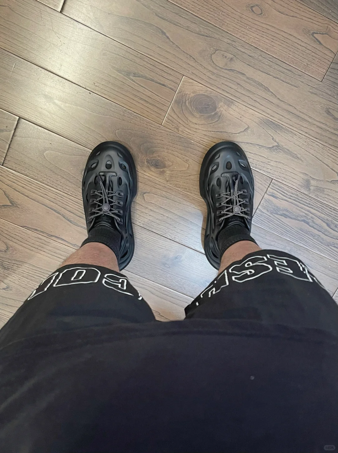 -拖鞋&凉鞋,炎热夏季必备单品;而发展到现在,兼顾清凉属性和出挑外形,洞洞鞋就是不二选择 . -本期是all black look,趁着还不太热,快来尝试下酷酷的全黑色系搭配,可能是意想不到的体验 . —————— . ✏️本人178cm75kg 球鞋尺码265mm(正常EU42) . 💭以上均为我个人观点,不喜勿喷,欢迎讨论。