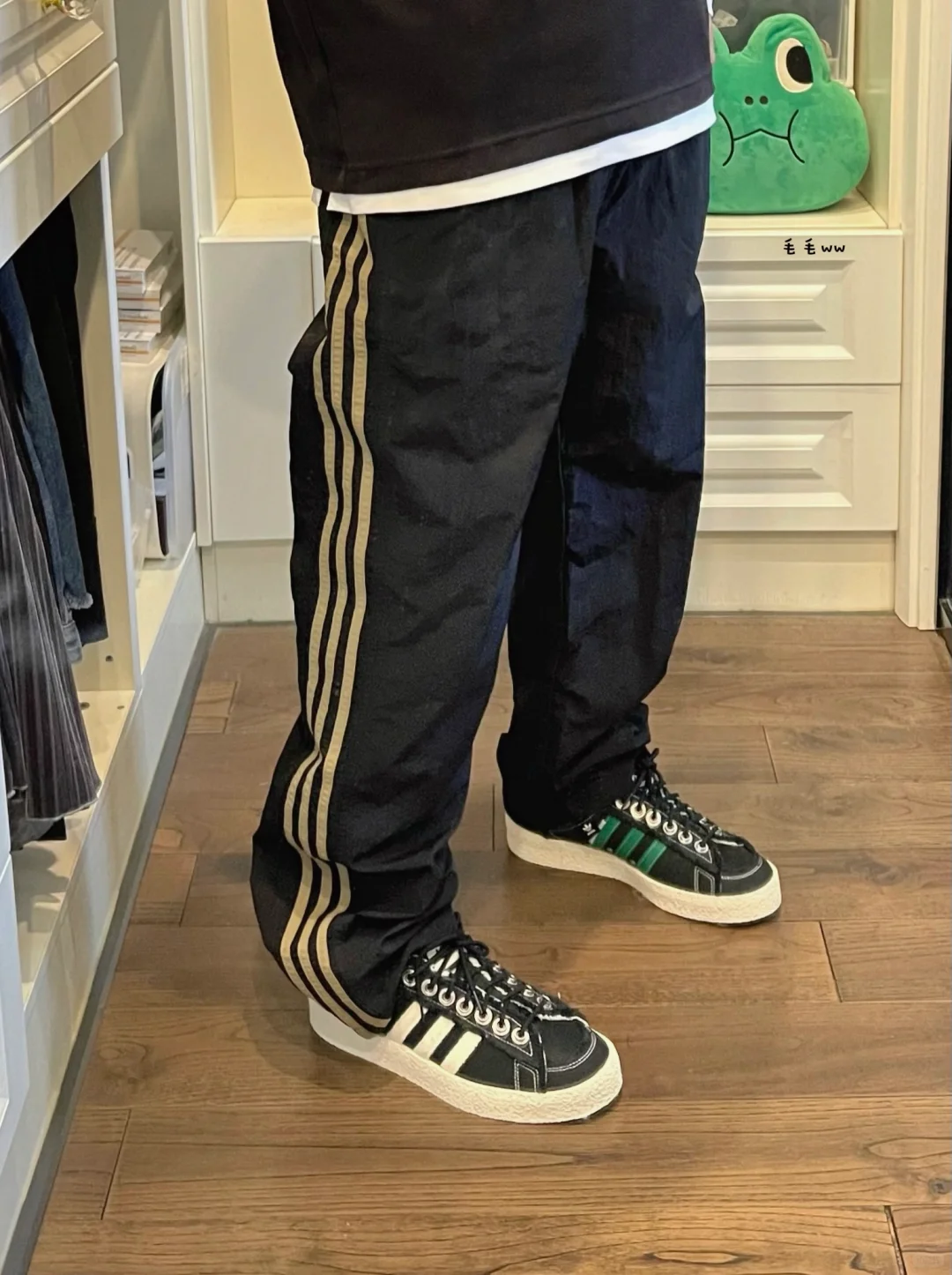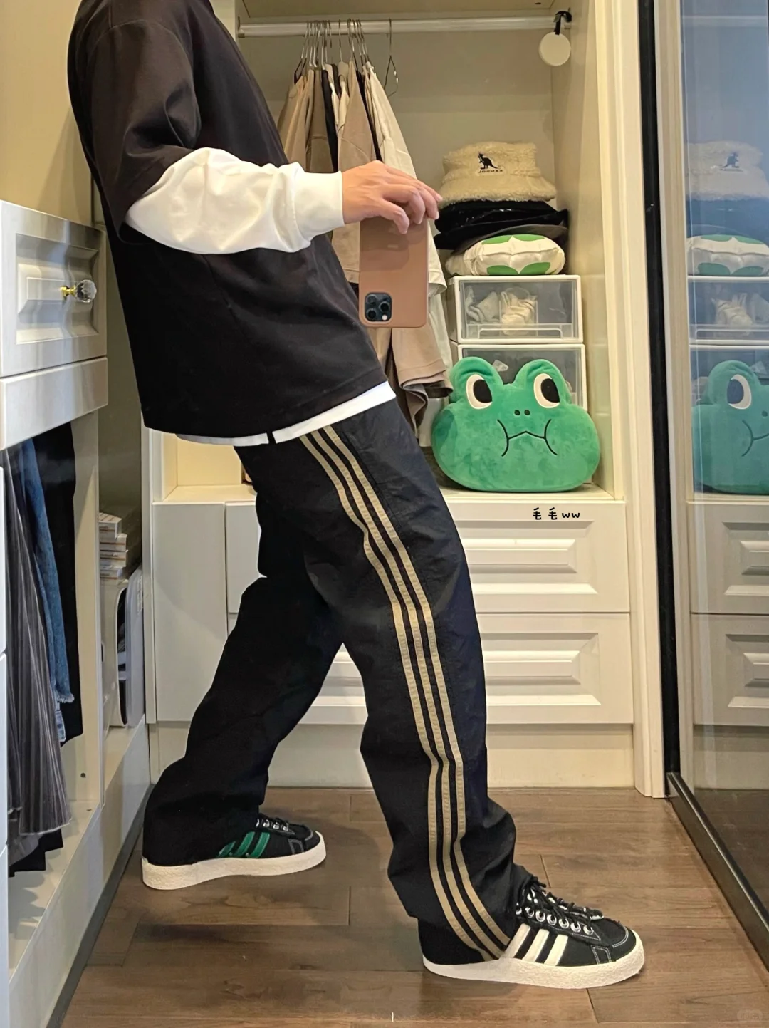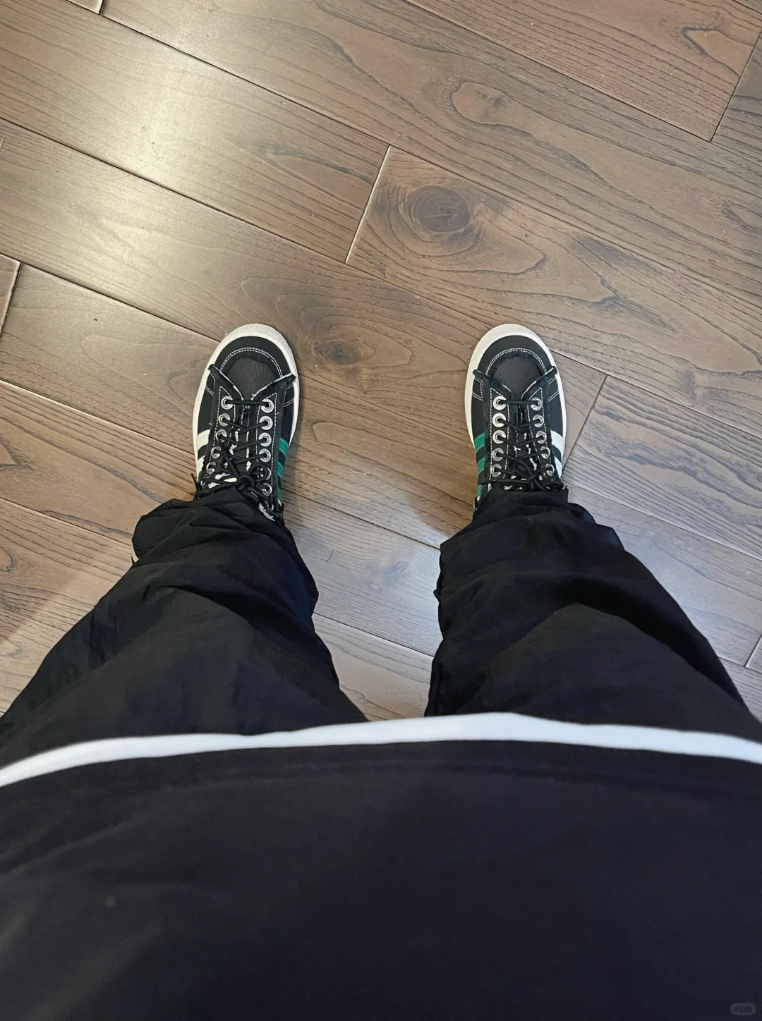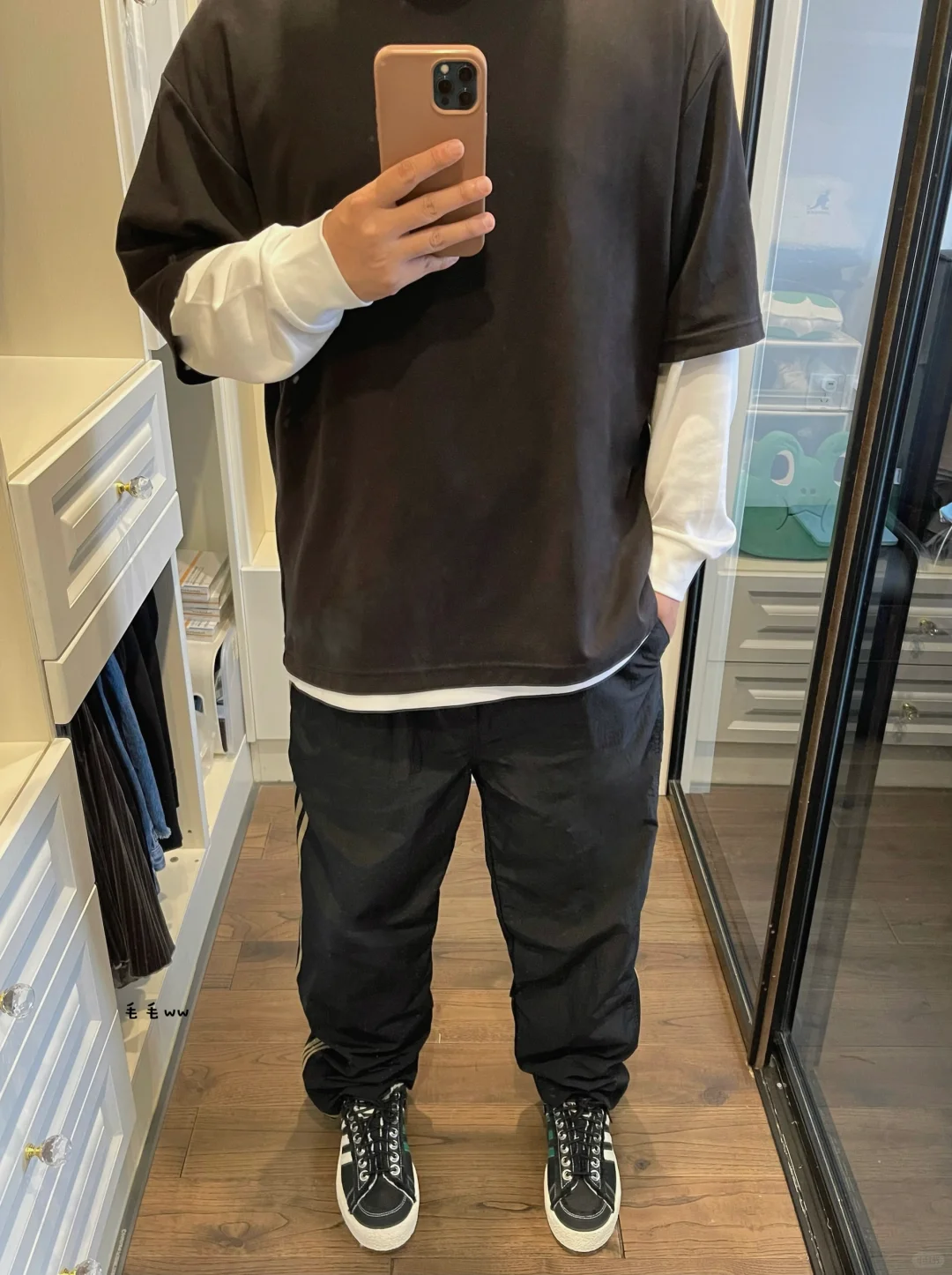 -迪子走起来了,到处翻三条杠的球鞋,条纹直筒裤突然能搭配了,不再像校服了 . -整体黑白色系,长短袖叠穿的效果,也很适合忽冷忽热的气候,抓住春季的尾巴 . —————— . ✏️本人178cm75kg 球鞋尺码265mm(正常EU42) . 💭以上均为我个人观点,不喜勿喷,欢迎讨论。