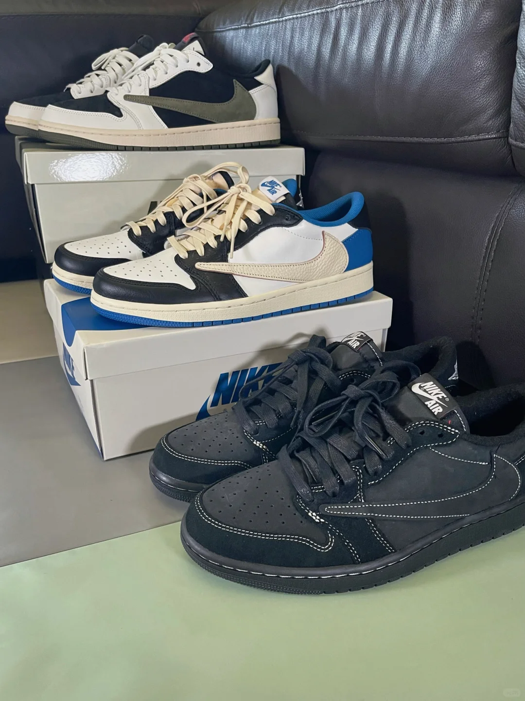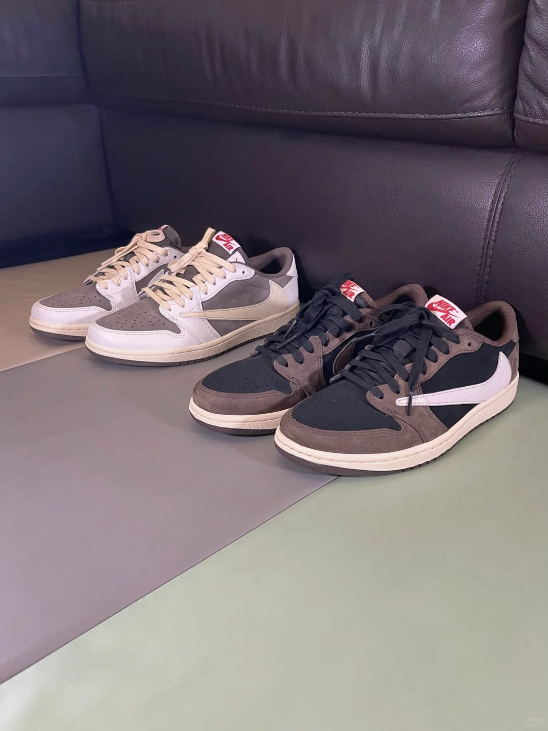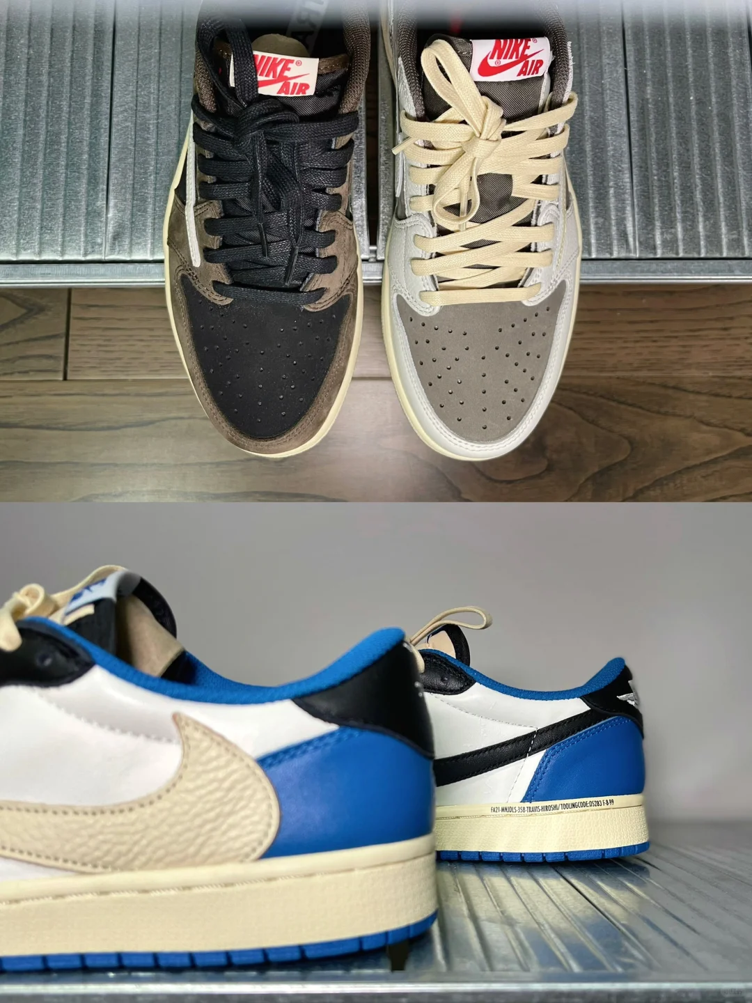 -Reverse Swoosh系列又更新了,不知不觉五年 -而且后续曝出各种谍照,不妙的(调色盘)感觉 -本期回顾下这个经典系列,Air Jordan 1 low TS . —————— . -Air Jordan 1 low / Travis Scott . -Air Jordan 1 low / Fragment Design . —————— . ✏️本人球鞋尺码265mm(正常 EU42) . 💭以上均为我个人观点,不喜勿喷,欢迎讨论。