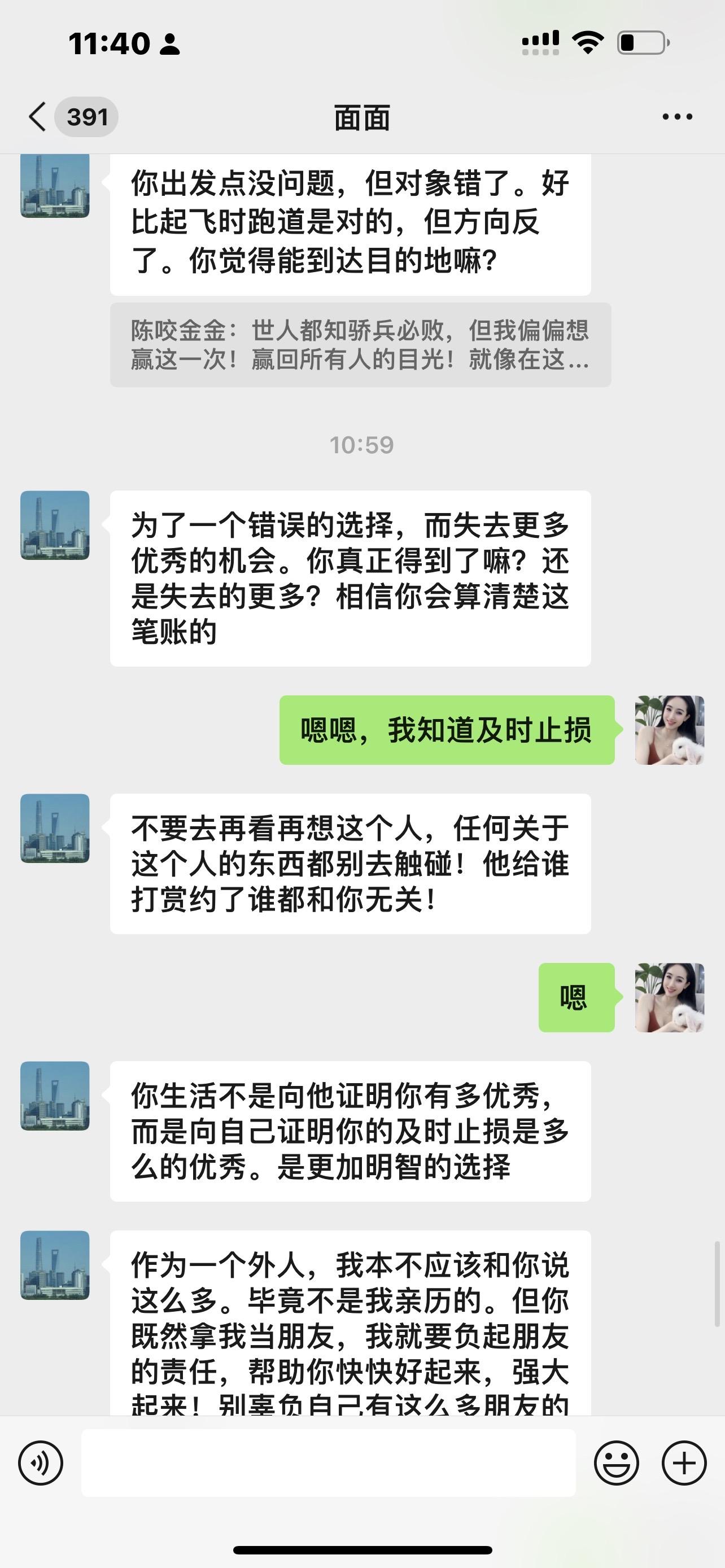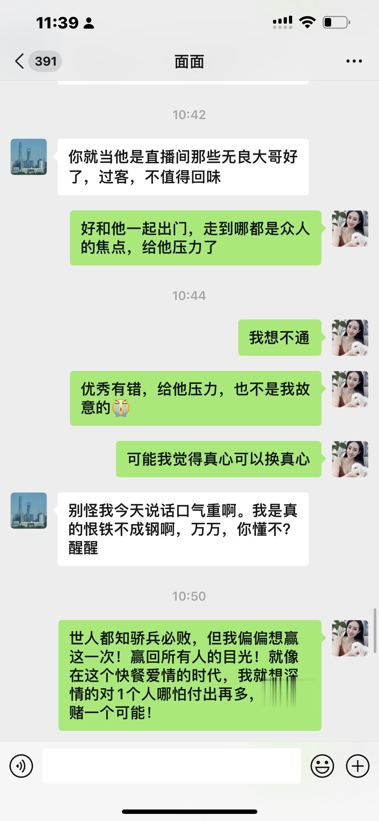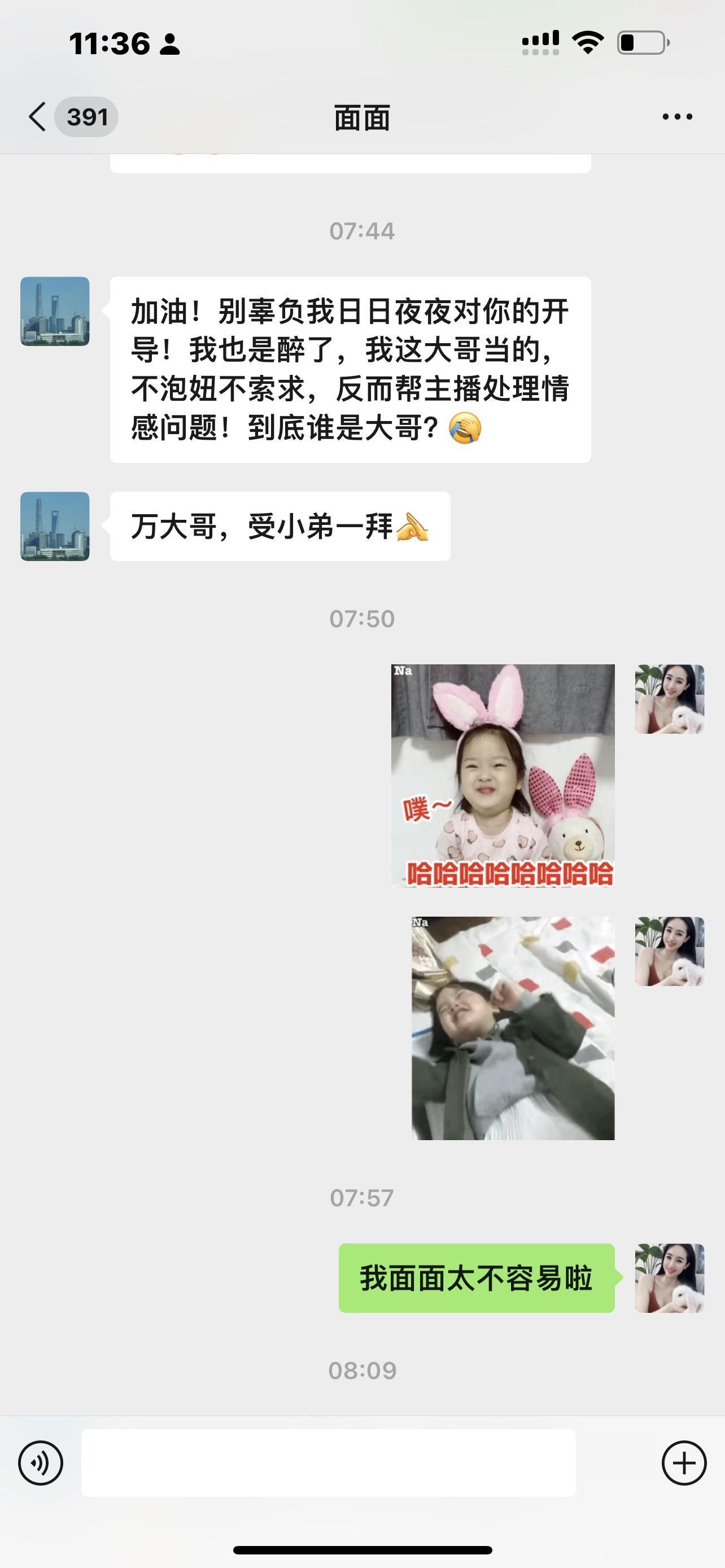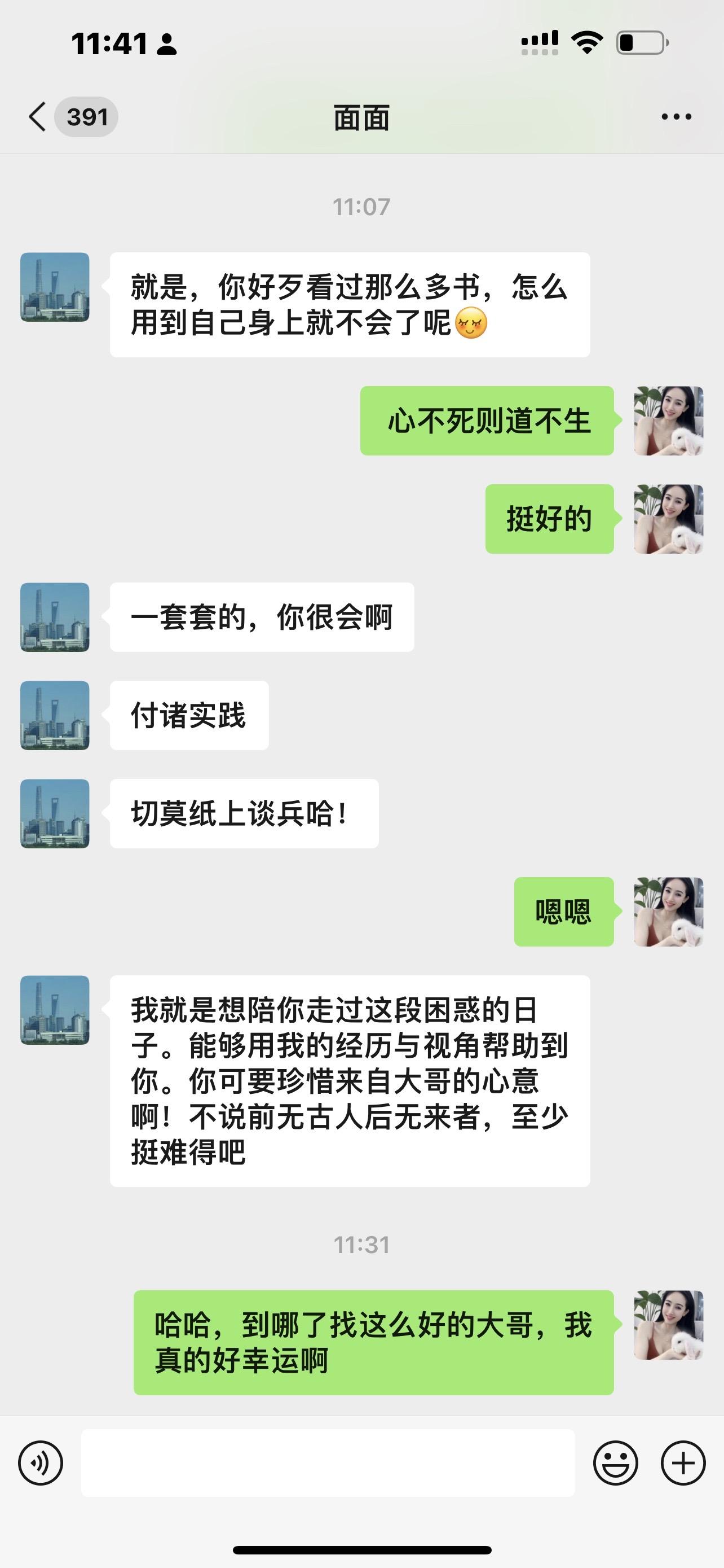 直播间的幸运。何其有幸遇到面面这么好的大哥,教我真诚,保持孩童般的心境,亦师亦友般的存在,面面会一直在吗?