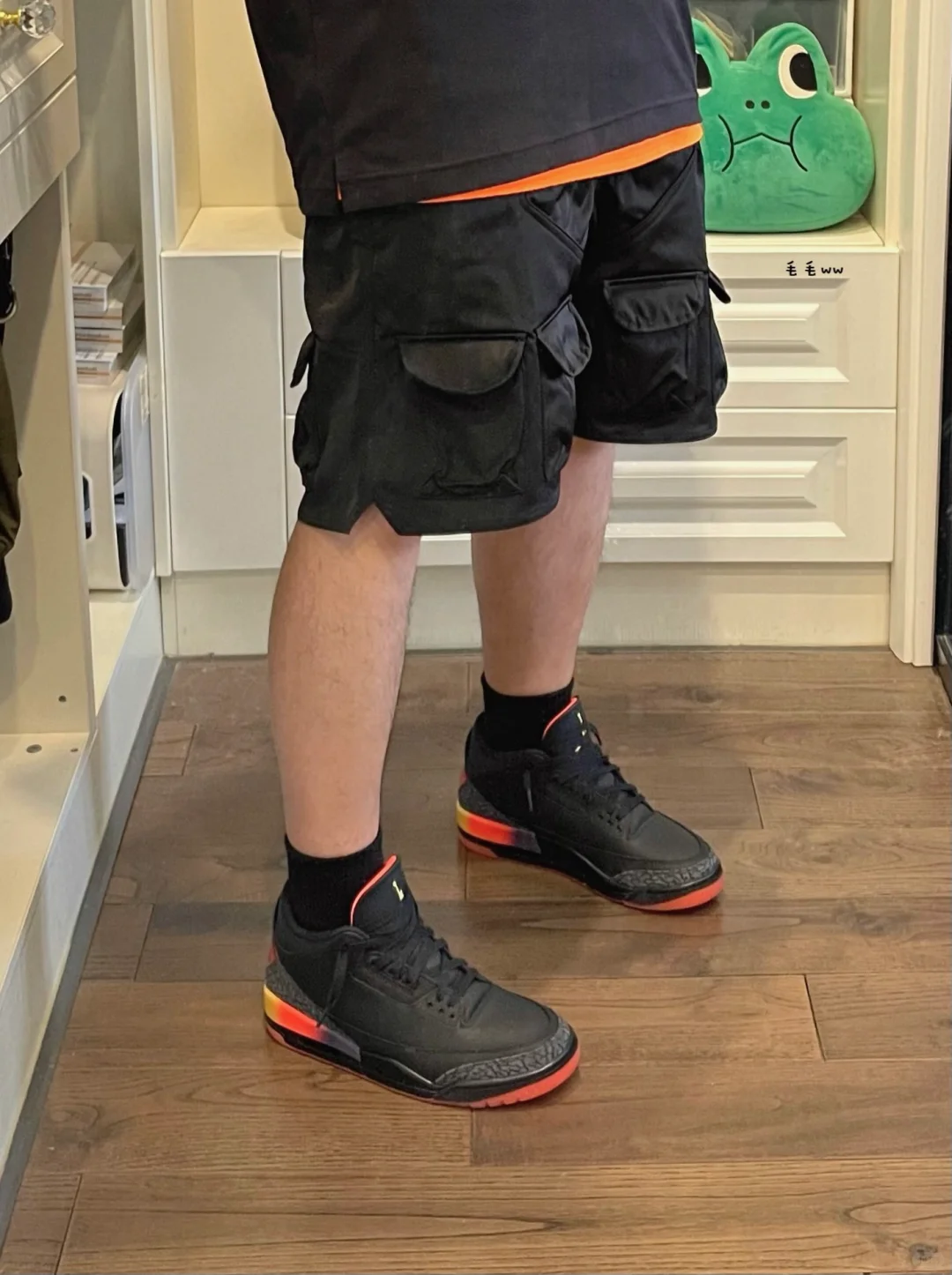 -AJ3或许不适合夏季,但一定是适配短裤的球鞋 -跟乔四一样,调整后完美楦型,能很好修饰腿型 -单调的黑色系搭配,黑橙或黑黄,彩色点缀细节 . —————— . ✏️本人178cm75kg 球鞋尺码265mm(正常EU42) . 💭以上均为我个人观点,不喜勿喷,欢迎讨论。