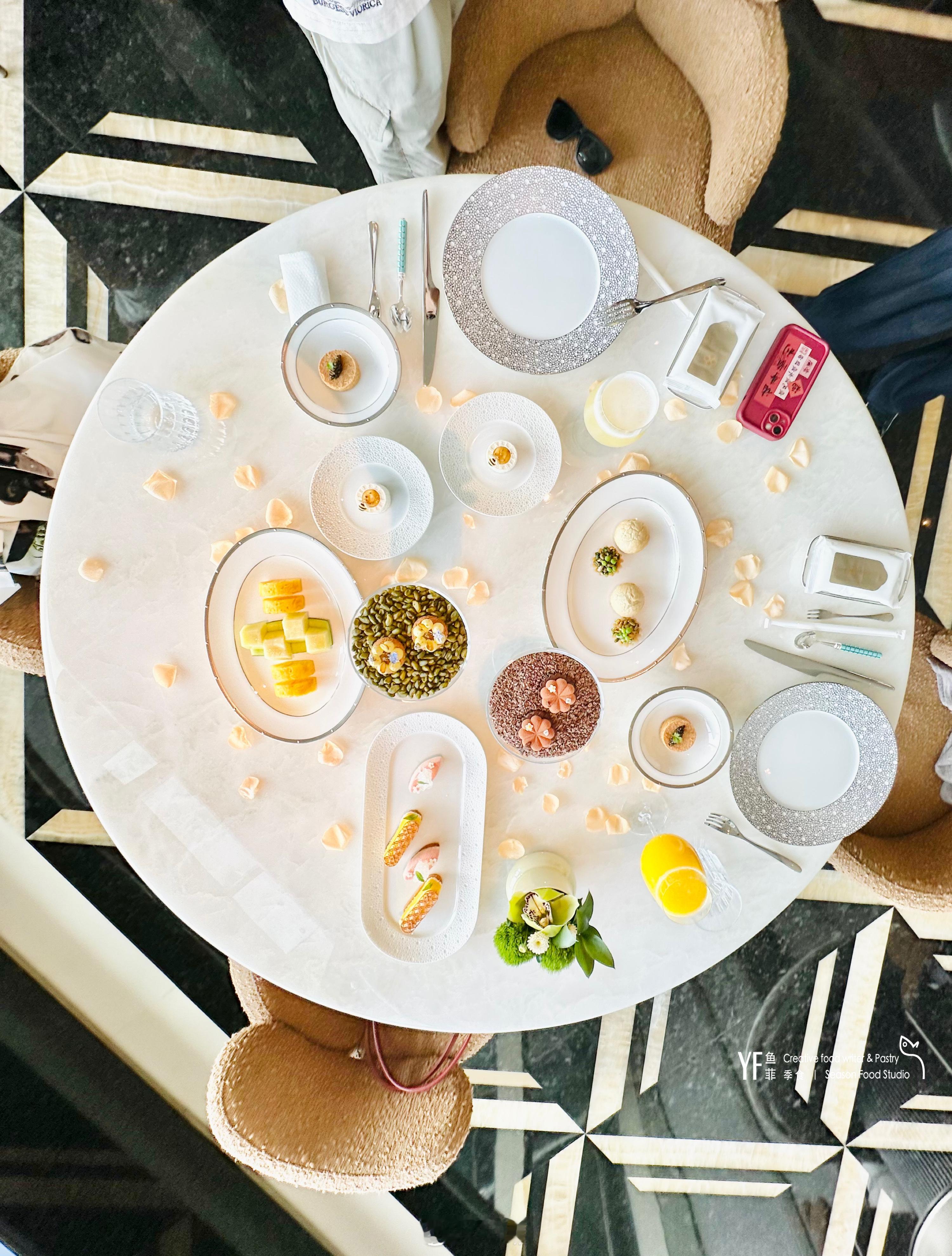 坐拥在56层的高空,在百米高空俯瞰上海浦江,仿佛进入了定格动画的世界,建筑、马路与黄浦江尽收眼底。偶尔也让自己暂时远离城市的喧嚣,在云端和挚友一起感受独特的潮汕与西式融合的Fusion下午茶。