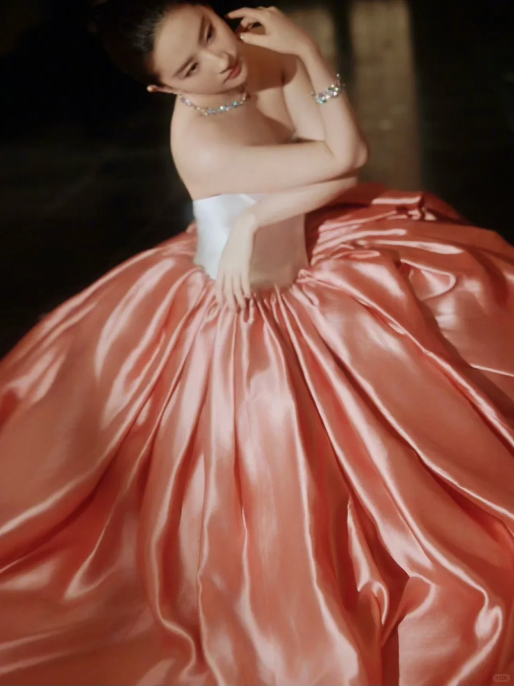 《玫瑰的故事》醒花会亦菲第二套look让我想到了意大利画家Vittorio Reggianini的作品,Reggianini被称为“costume painters”,他的画作以描绘典雅的宫廷仕女闻名,对丝绸或者缎面的裙子有着精致生动的展现,亦菲身穿粉色缎面长裙,搭配盘发造型,有一种写实的油画感,写实感指的是画面立体感强,有不错的光影效果,油画感指的是视觉上有创意有层次,两者加起来感觉她是从画上走来的:灿若明霞,似远似近。今天的这朵玫瑰不是荔枝玫瑰,不是英伦玫瑰,而是芍药+玫瑰,裙子的形状有点像芍药的花包,娇憨可爱,但整个人又是玫瑰花娇俏优雅又有灵气的感觉。女娲真会画啊~~[点赞R][点赞R][点赞R]