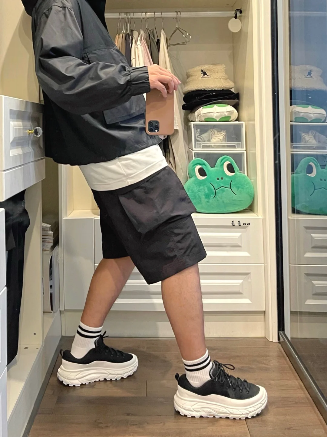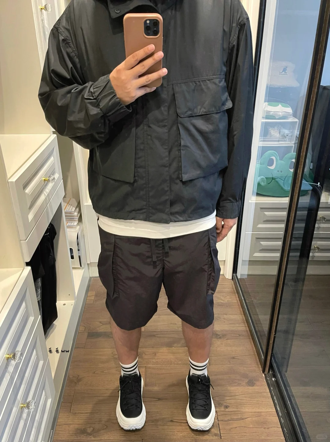 -城市户外通勤,上长下短穿搭;20+不冷不热刚刚好,抓住春季最后的尾巴 . -轻薄冲锋衣搭配工装短裤,主打一个口袋够多,U这季的单品实用性还不错 . —————— . ✏️本人178cm75kg 球鞋尺码265mm(正常EU42) . 💭以上均为我个人观点,不喜勿喷,欢迎讨论