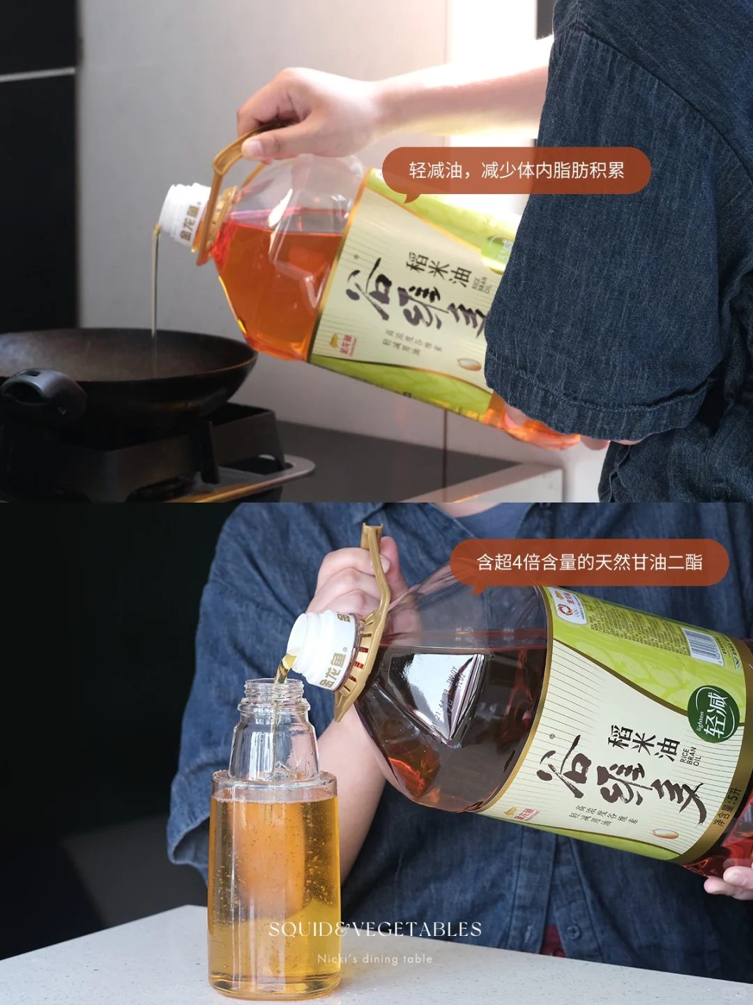 所以减脂时期其实并不是只能吃沙拉、水煮菜,同样也可以吃油脂。而且这款稻米油的油粘性很高,每次炒菜只用放一点油就可以吃到令人满足的料理。