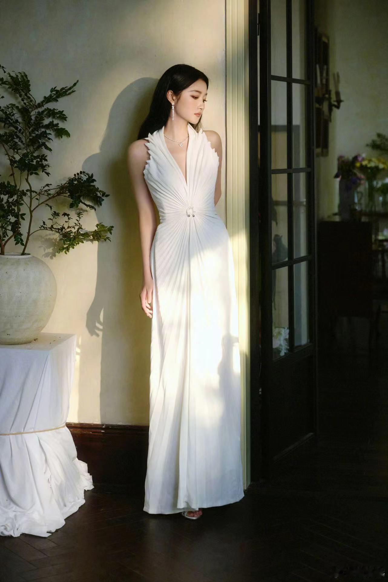 一身白色挂脖裙,不食人间烟火,关晓彤总是能够为我们带来这样的惊喜