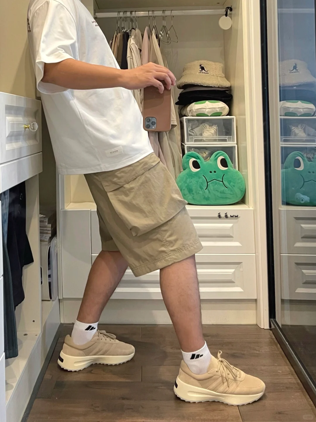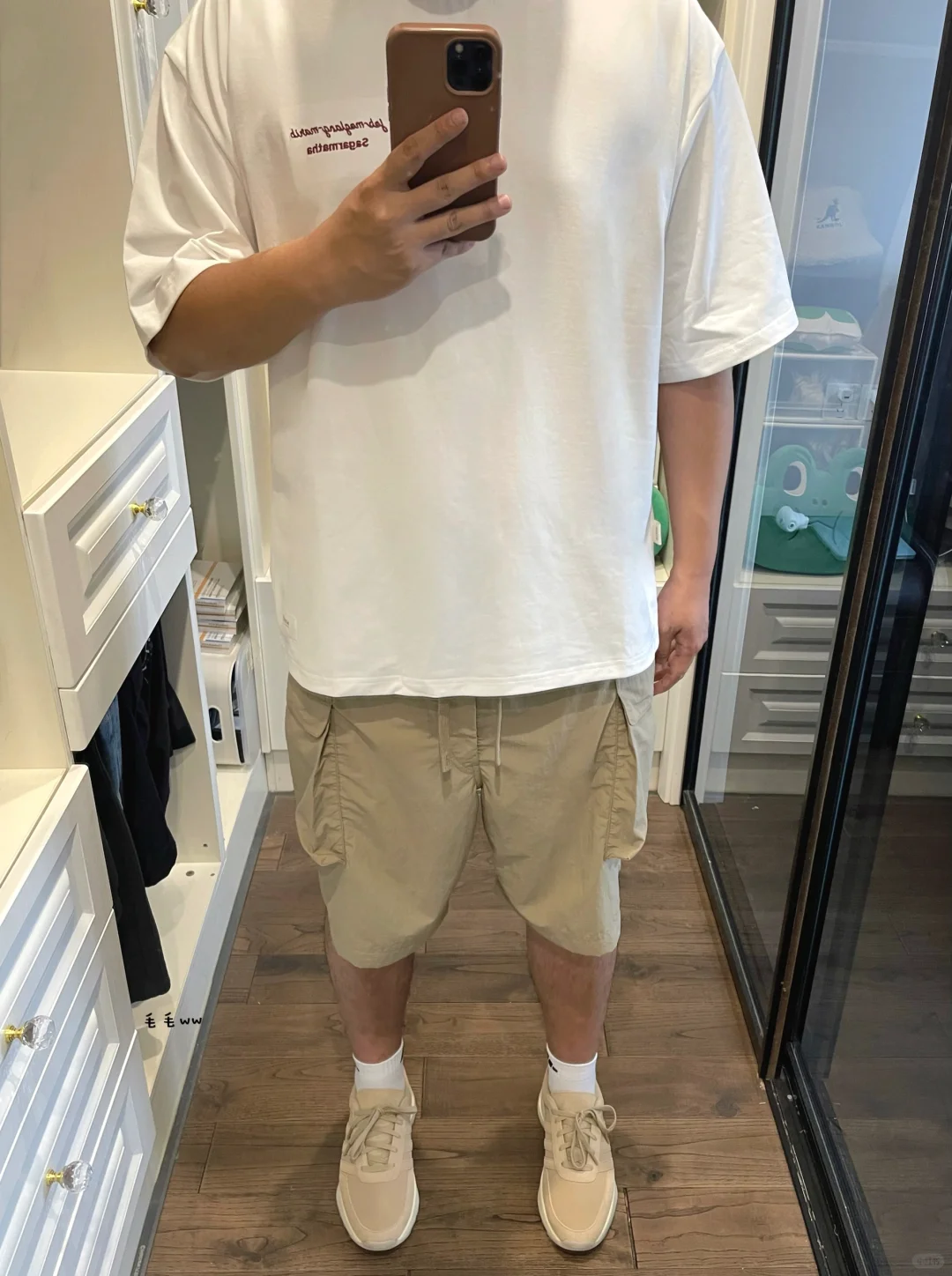 -U系列工装短裤,自黑色绿色之后,又入卡其色 -大廓形好搭,尼龙面好穿,简洁搭配白Tee即可 -大口袋比日常的要深,装手机不晃但要适应一阵 . —————— . ✏️本人178cm75kg 球鞋尺码265mm(正常EU42) . 💭以上均为我个人观点,不喜勿喷,欢迎讨论。