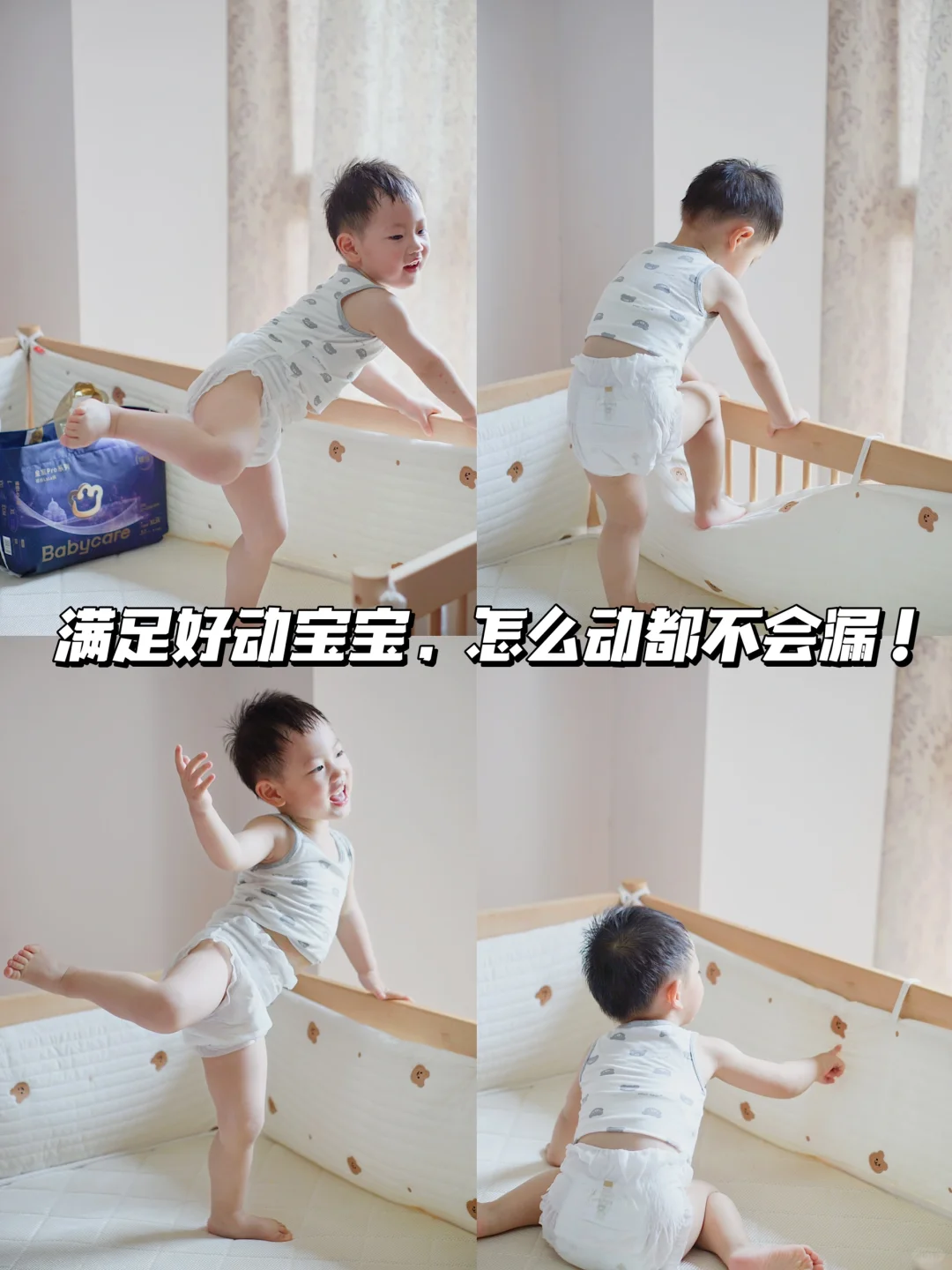 我的首要需求就是不漏!但发现这款拉拉裤可以满足妈妈们的多维度需求,不漏、不磨、舒适性、包裹性都能满足!设计加高10mm,满满的安全感,更好的包裹小肚肚,不怕宝宝后漏!像我家孩子是好动宝宝,爬上爬下怎么动都不漏!夜晚睡觉不老实也不再侧漏,宝宝安睡一整夜!夏天开空调加高的设计还能护住宝宝小肚肚不着凉。