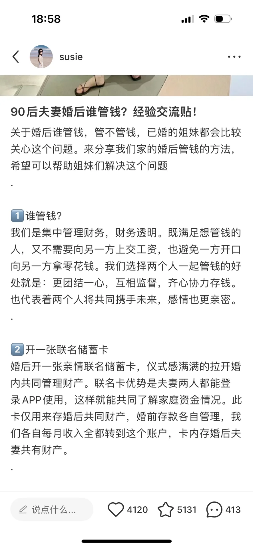 这个是很多夫妻会吵架的点。我们达成共识:集中管理财务,财务透明。我之前有详细写过我家管钱的方法,看图234,因此婚后我们从未为钱吵架过。