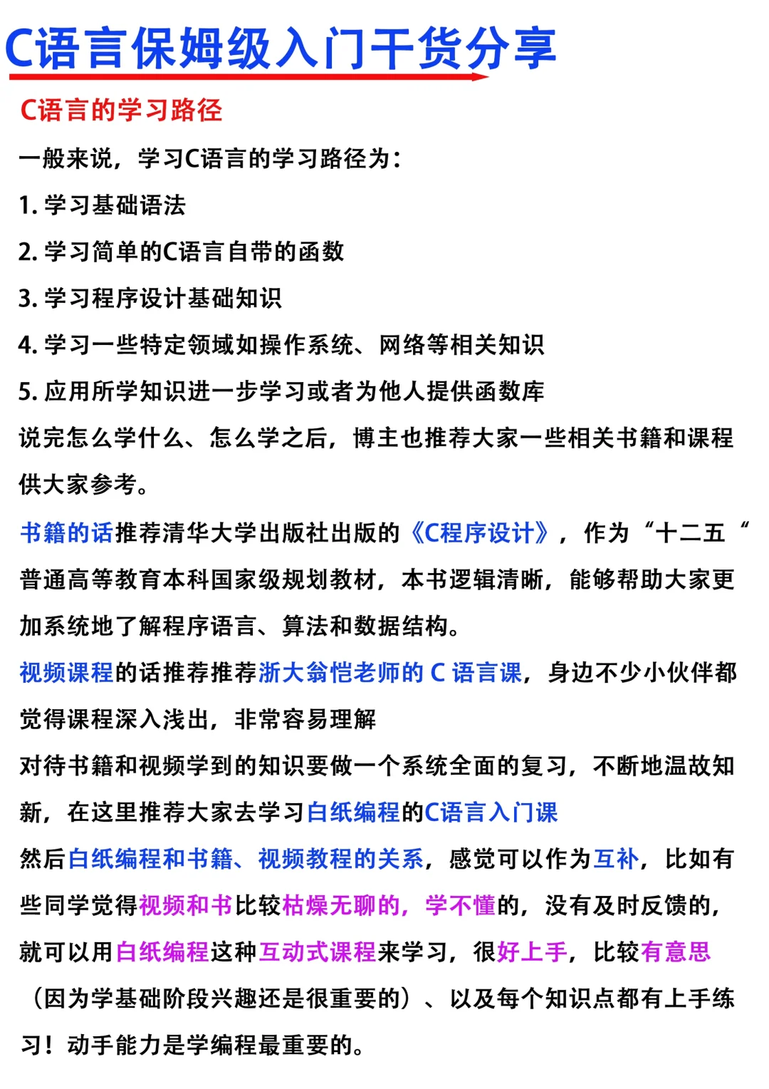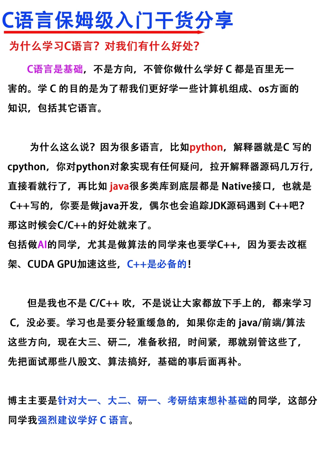 [举手R]博主主要是针对大一、大二、研一、:考研结束想补基础的同学,这部分同学我强烈建议学好 C 语言