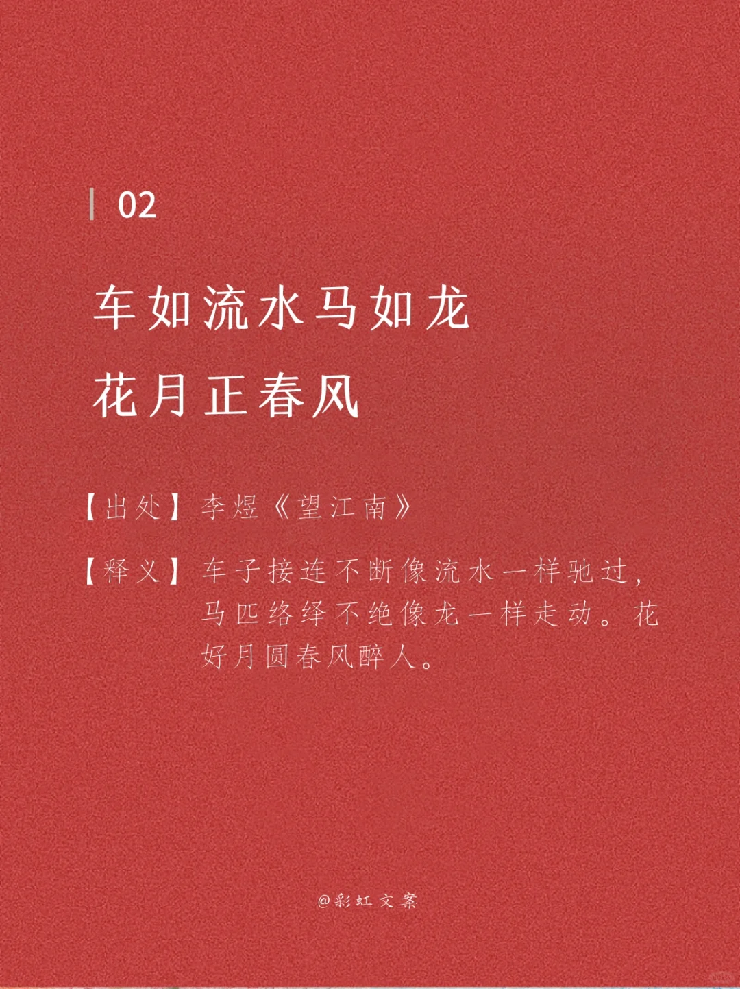 车如流水马如龙。花月正春风。